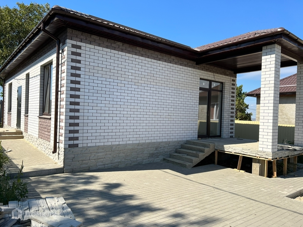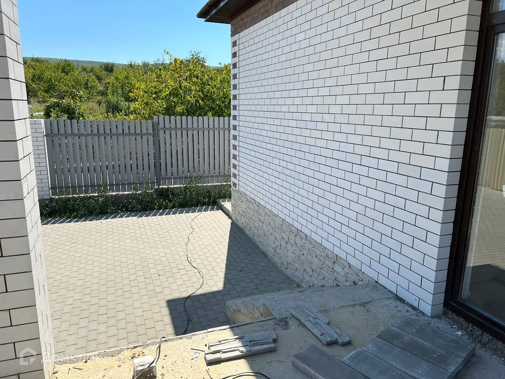 Стены керамзитовый блок, утепление Пеноплекс, отделка кирпич. Цоколь - декоративный камень. Кровля металлочерепица. Забор штакет. Качественные металлопластиковые окна.