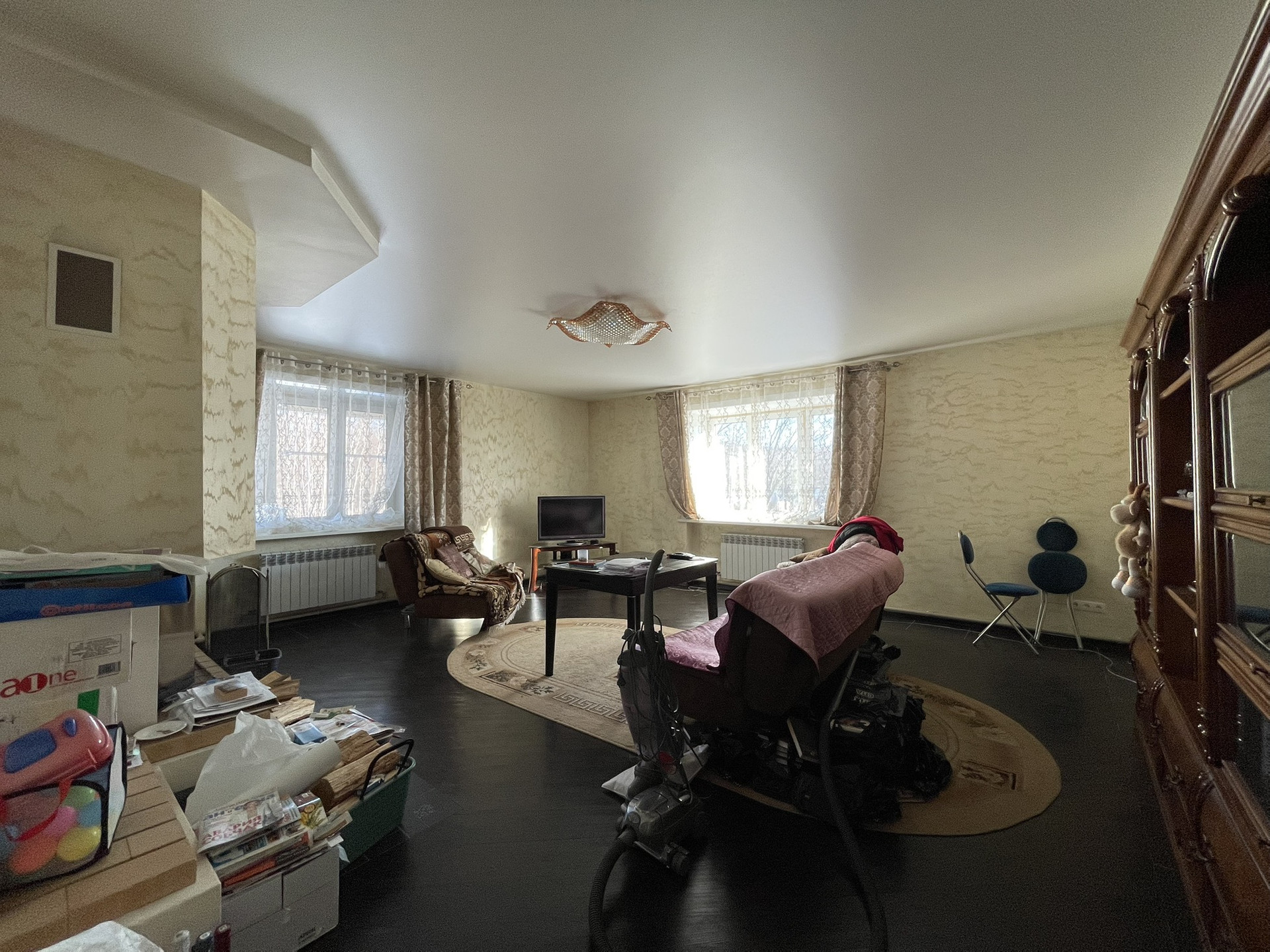 В доме выполнен современный качественный ремонт в 2017 году. На полу ламинат, и керамогранитная плитка, на стенах новые обои, потолки натяжные, окна все пластиковые. Дом очень тёплый , сухой, невероятно уютный. На первом этаже расположены 2 спальни, сан узел, большая гостиная с настоящим камином разжигающимся дровами, большая удобная кухня - обеденная. На втором этаже две большие спальни и две лоджии по 10 М2, вместительная гардеробная. Имеется сухой высокий бетонированный подвал 50 М2: можно сделать тренажёрный зал или бильярдную.
