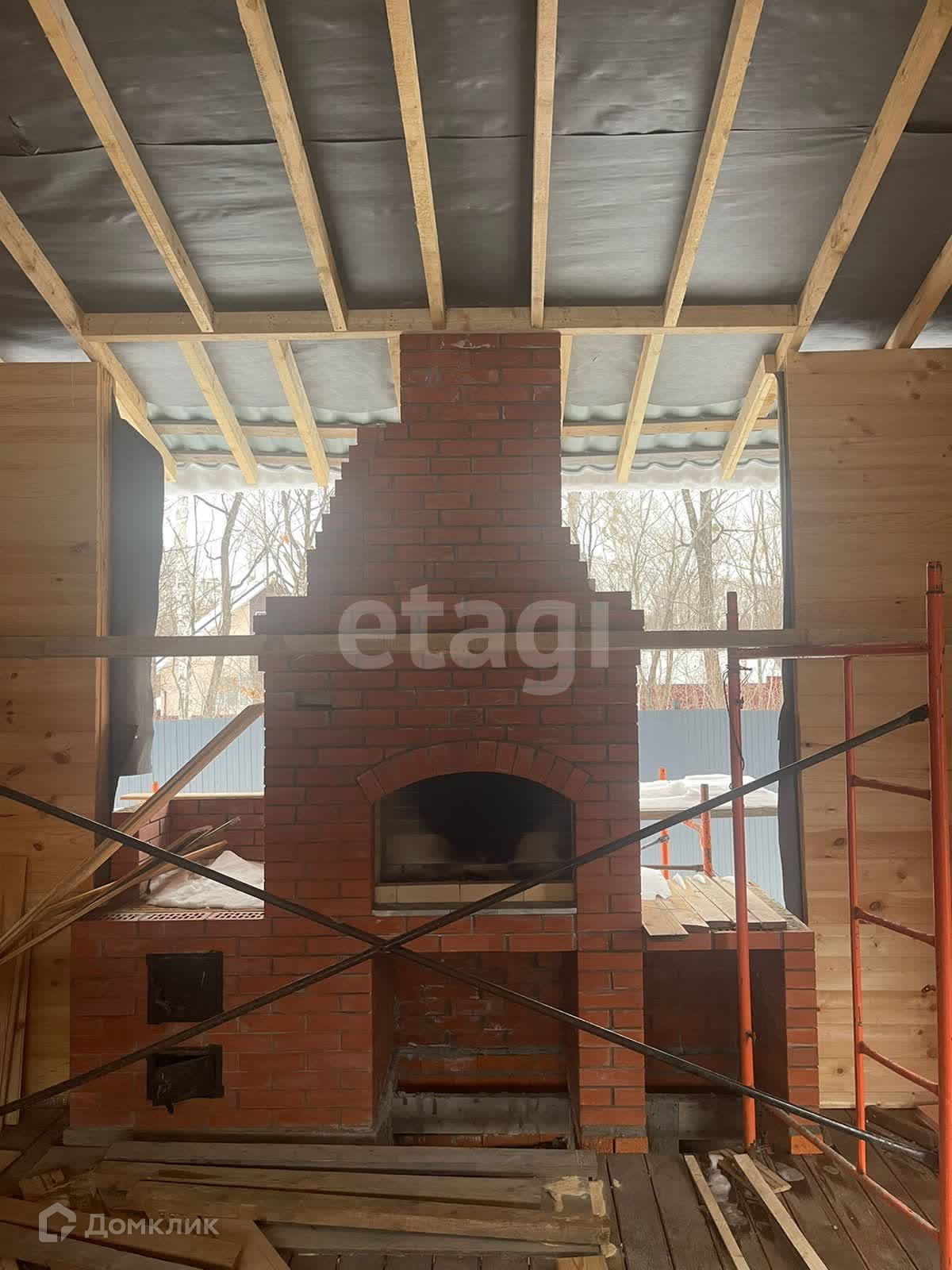 Вокруг дома терраса, которая соединяется с каркасной беседкой (зоной барбекю).