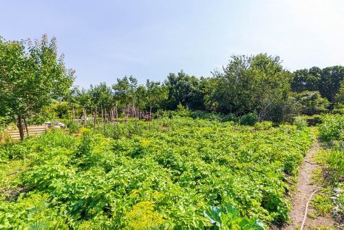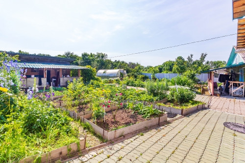 Плодово-ягодные насаждения: большой абрикосовый сад из 9 деревьев; яблони, груши, сливы, ирга, кусты вишни, смородины, крыжовника, жимолости, малины, ежевики, клубники, винограда и многих других растений. Имеется большой цветник.