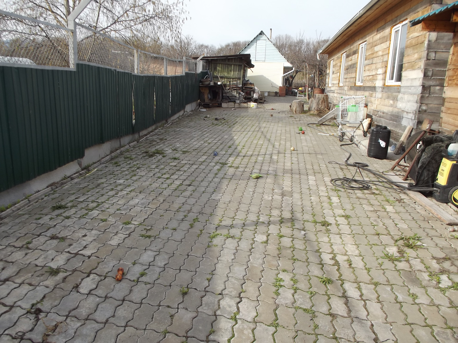 Дворовая территория и большой хозяйственный проезд вымощены брусчаткой.