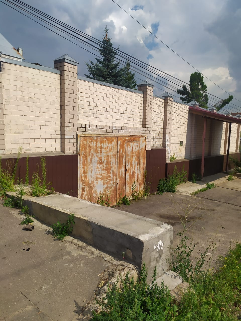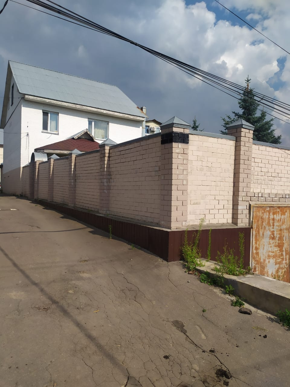 Участок огорожен кирпичным забором. Имеется гараж.