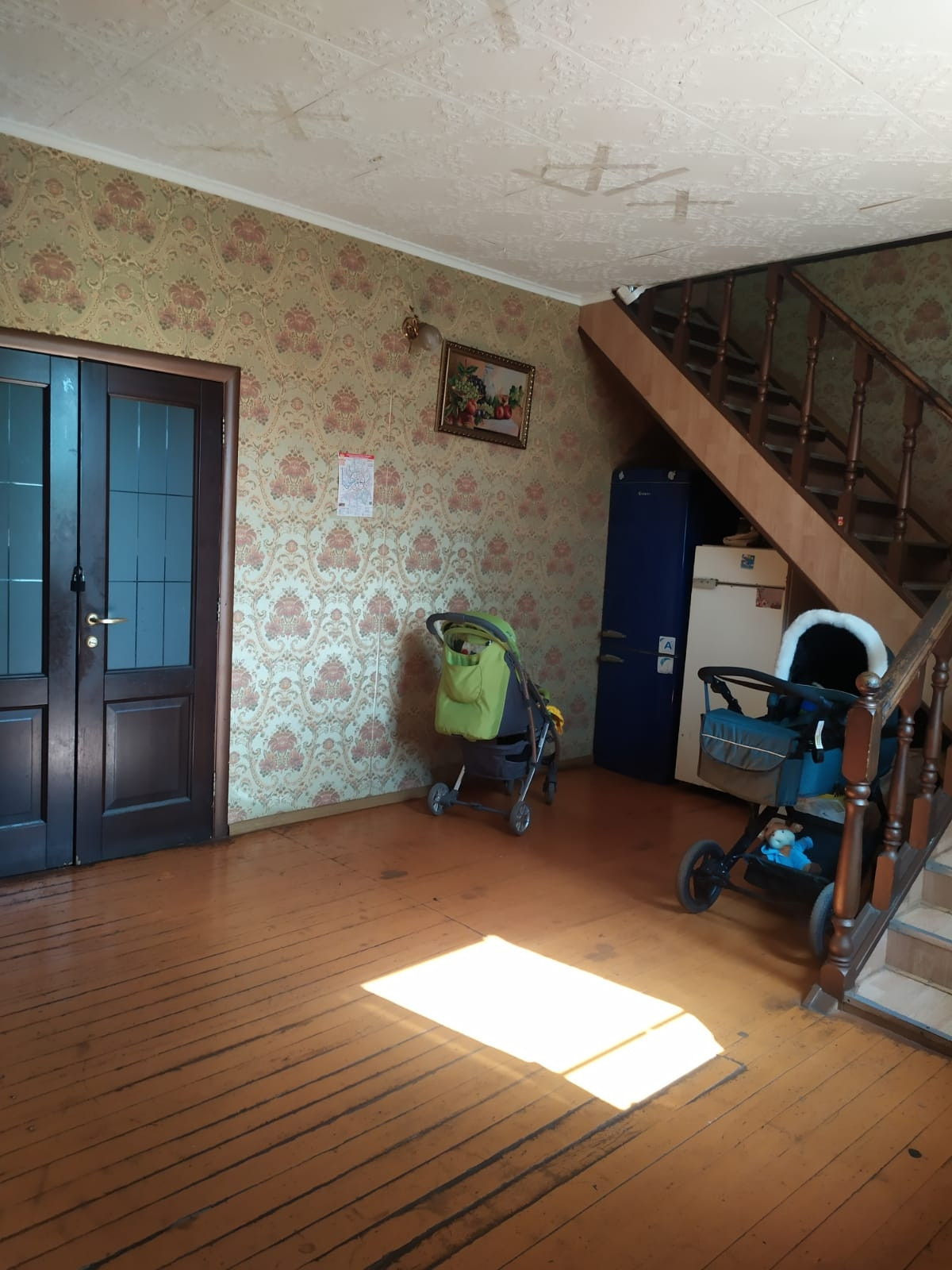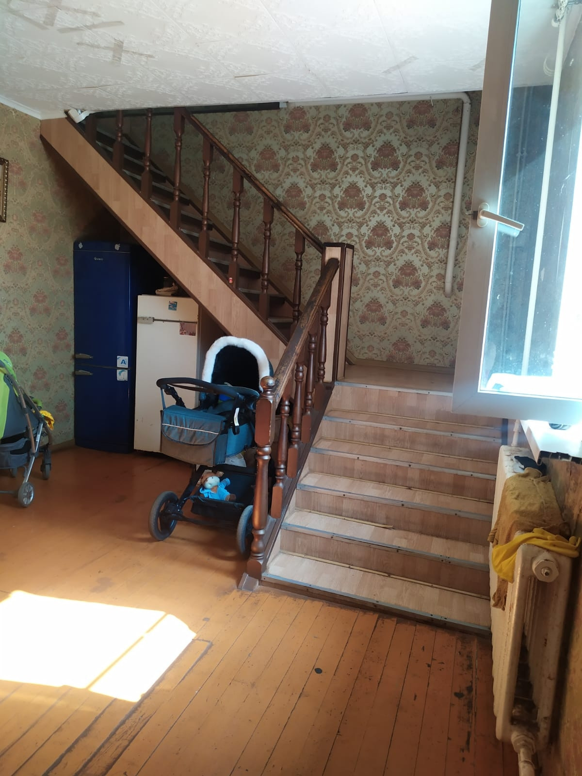 В доме шесть комнат, большая кухня и гостиная. Требует косметического ремонта.