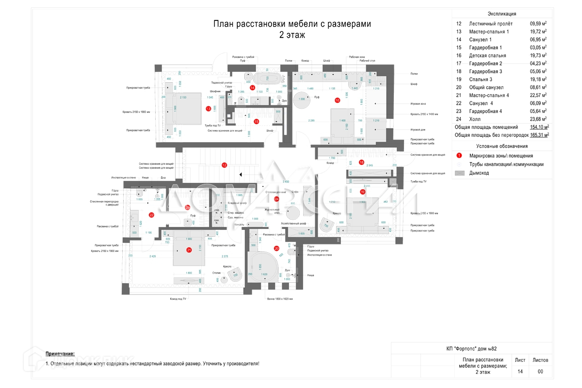 2 этаж: холл, мастер-спальня с с/у и гардеробной, гостевая спальня с с/у и гардеробной, 2 детские спальни, с/у.