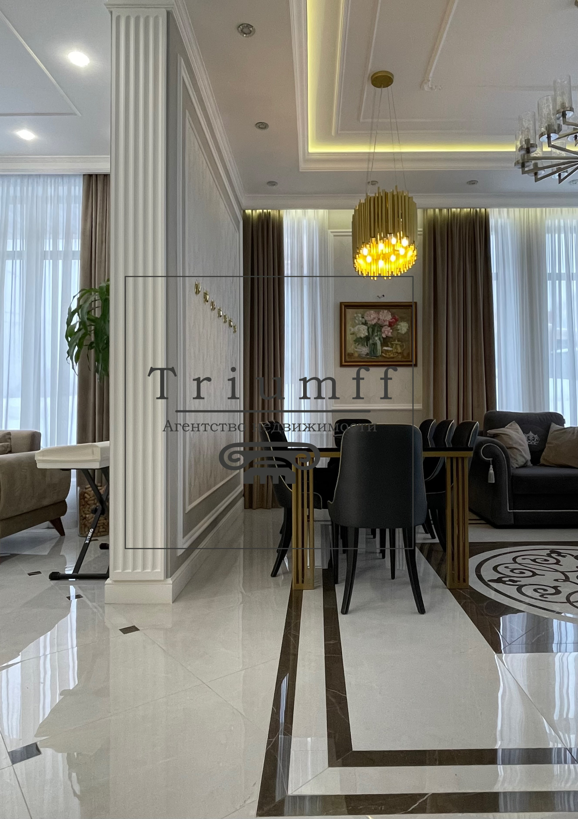 В отделке использовались высококачественные материалы от ведущих производителей. Дом  оборудован встроенной мебелью и техникой. Панорамные окна наполняют дом светом и расширяют пространство. Высота потолков 3.80