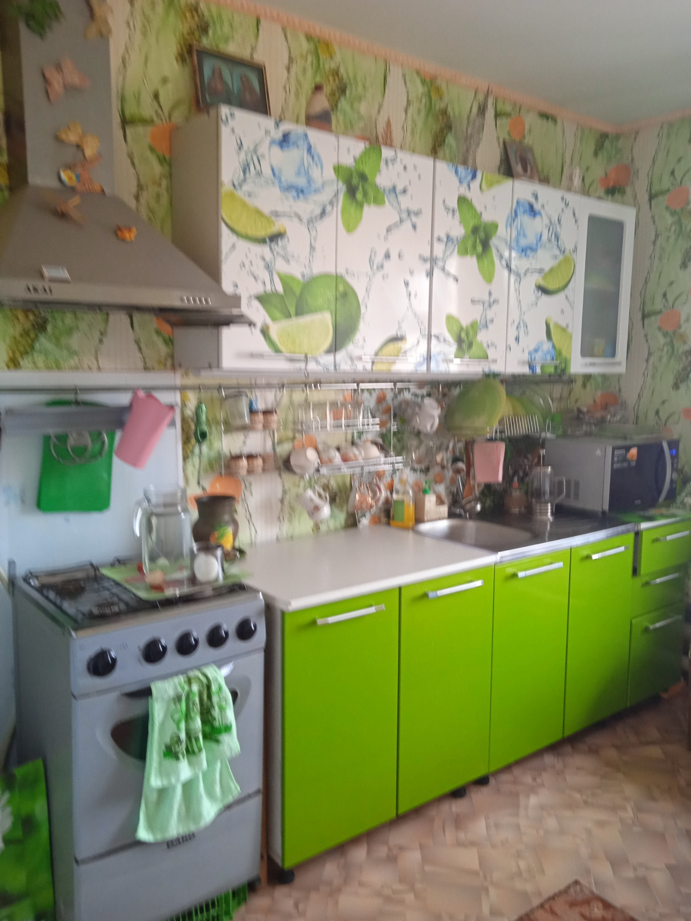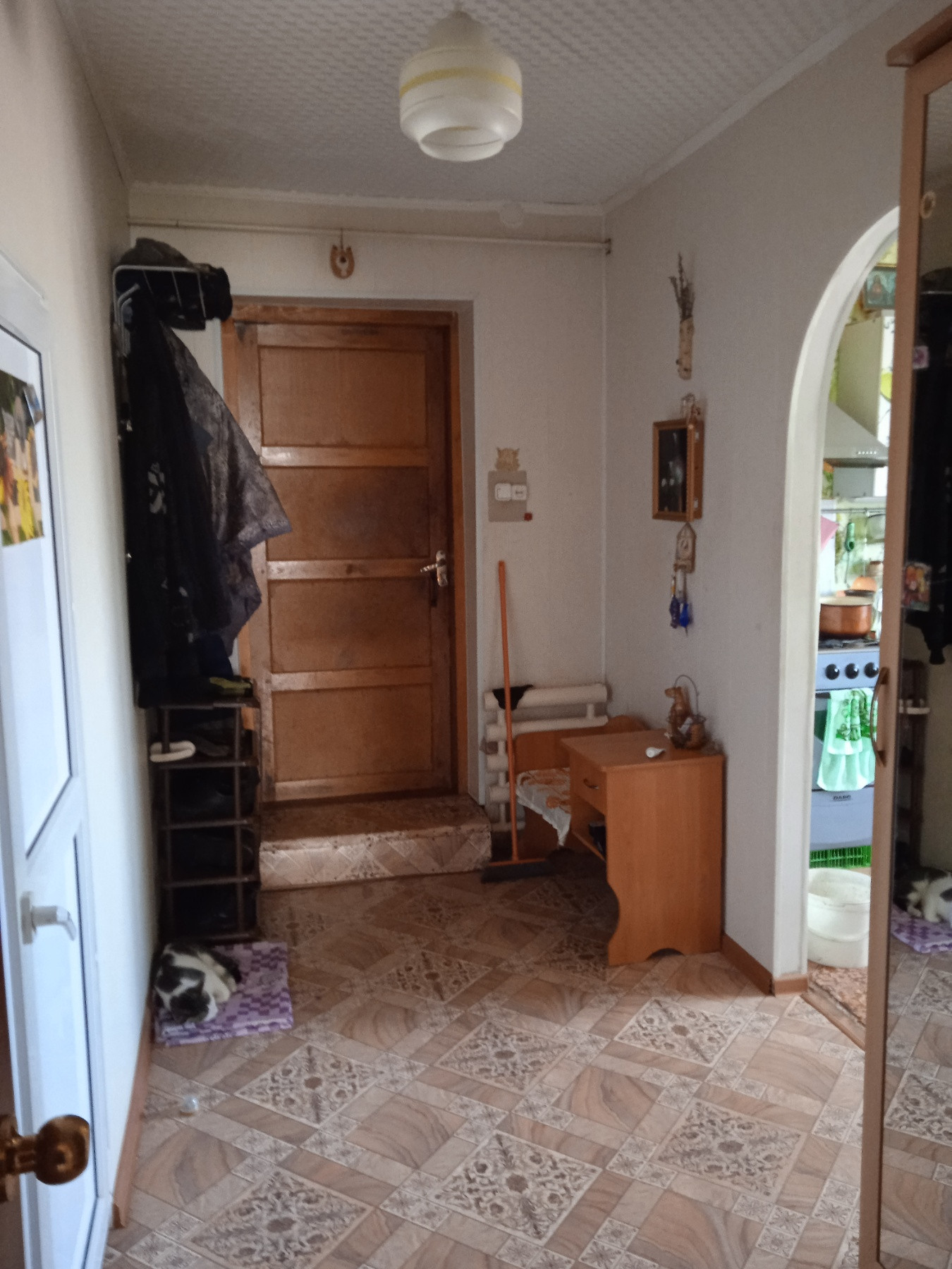 Продается квартира в двухквартирном доме, сделан косметический ремонт: пластиковые окна,на стенах обои,натяжные потолки. Туалет в доме. Участок 24 сотки земли. На участке есть Летняя кухня,Баня,два гаража.Отопление газовое.
