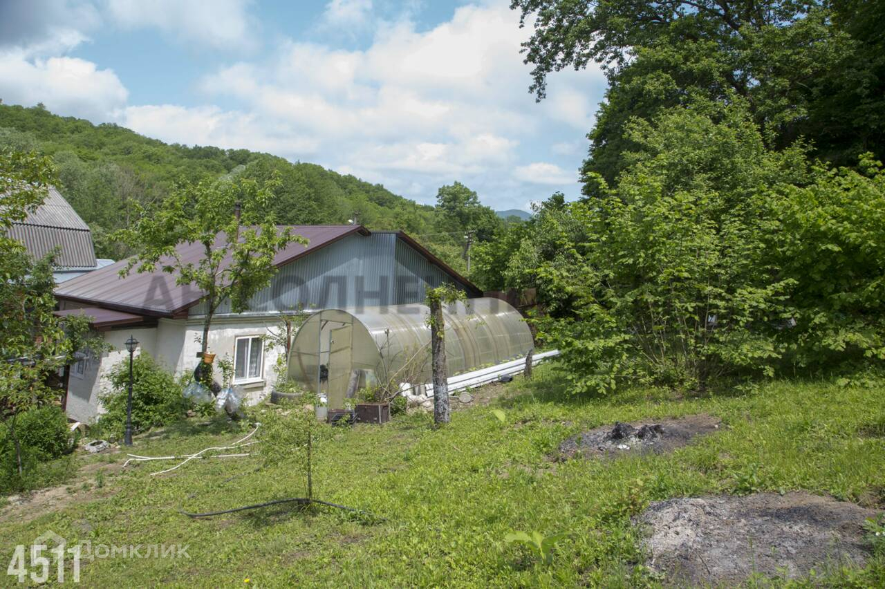 Продаю уютный большой одноэтажный дом 118 кв.м . в курортном с.Бжид . На участке более 9 соток.  В доме 2 входа 2 прихожие кухня, 2 комнаты с дизайнерской отделкой ,1 комната под баню или назначение на ваше усмотрение. Отопление печь камин, теплые полы. 2 санузла. Вода в колодце. Имеется подвал. Мебель можно оставить по желанию покупателя. Во дворе сад (инжир, хурма, яблони ) цветник, теплица 10 кв.м. До моря 10 мин на автомобиле до пляжа "Голубая бухта" или "бухта Инал" . Дом подойдет как для постоянного проживания, таки как дача. Выкупив соседний дом (тоже продается ,хозяин один)можно еще и вести курортный бизнес. Все документы в порядке.
