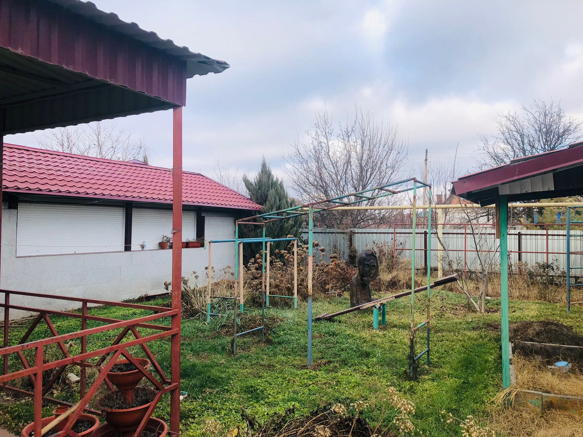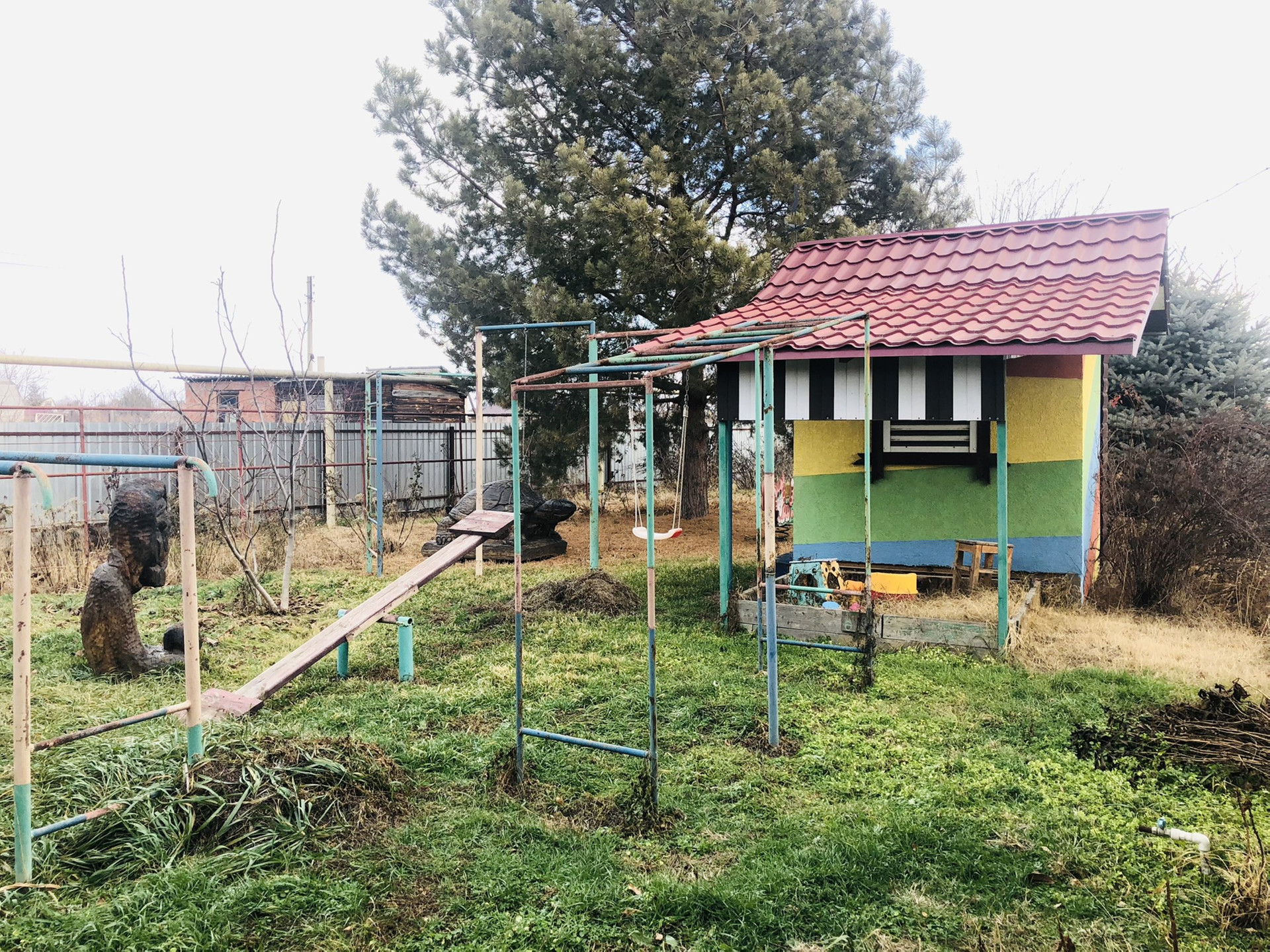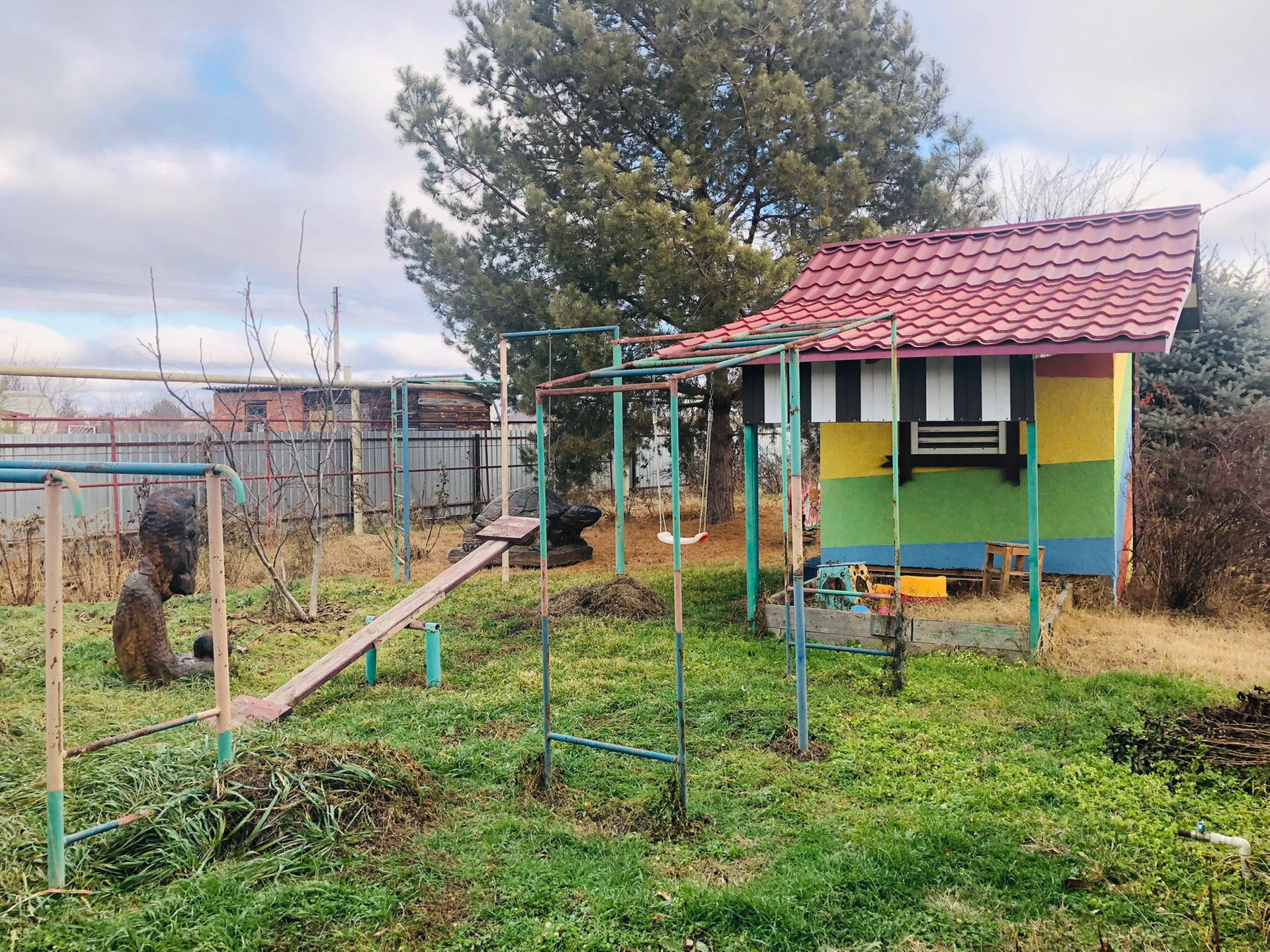 Во дворе детская площадка, навес для машины. Рядом есть все необходимое для жизни и отдыха.