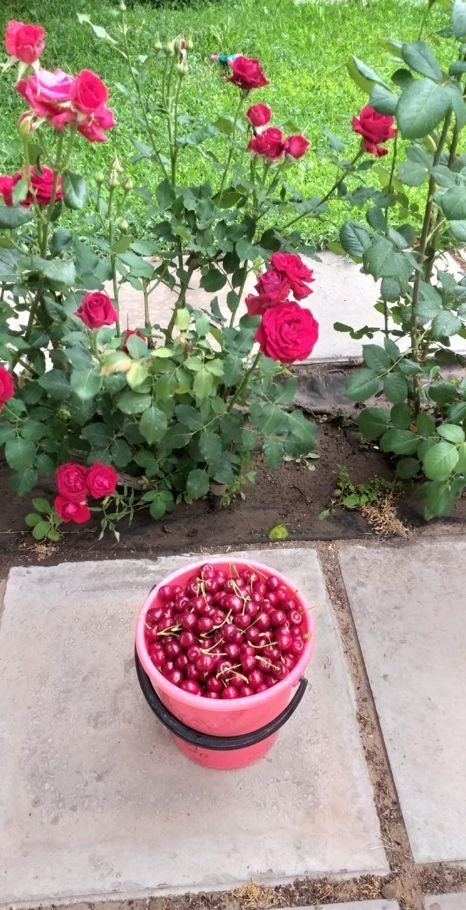 На даче много цветов: более 30 кустов роз, пионы, тюльпаны, ирисы, гладиолусы, астры. Растут 2 березы, ель канадская.
