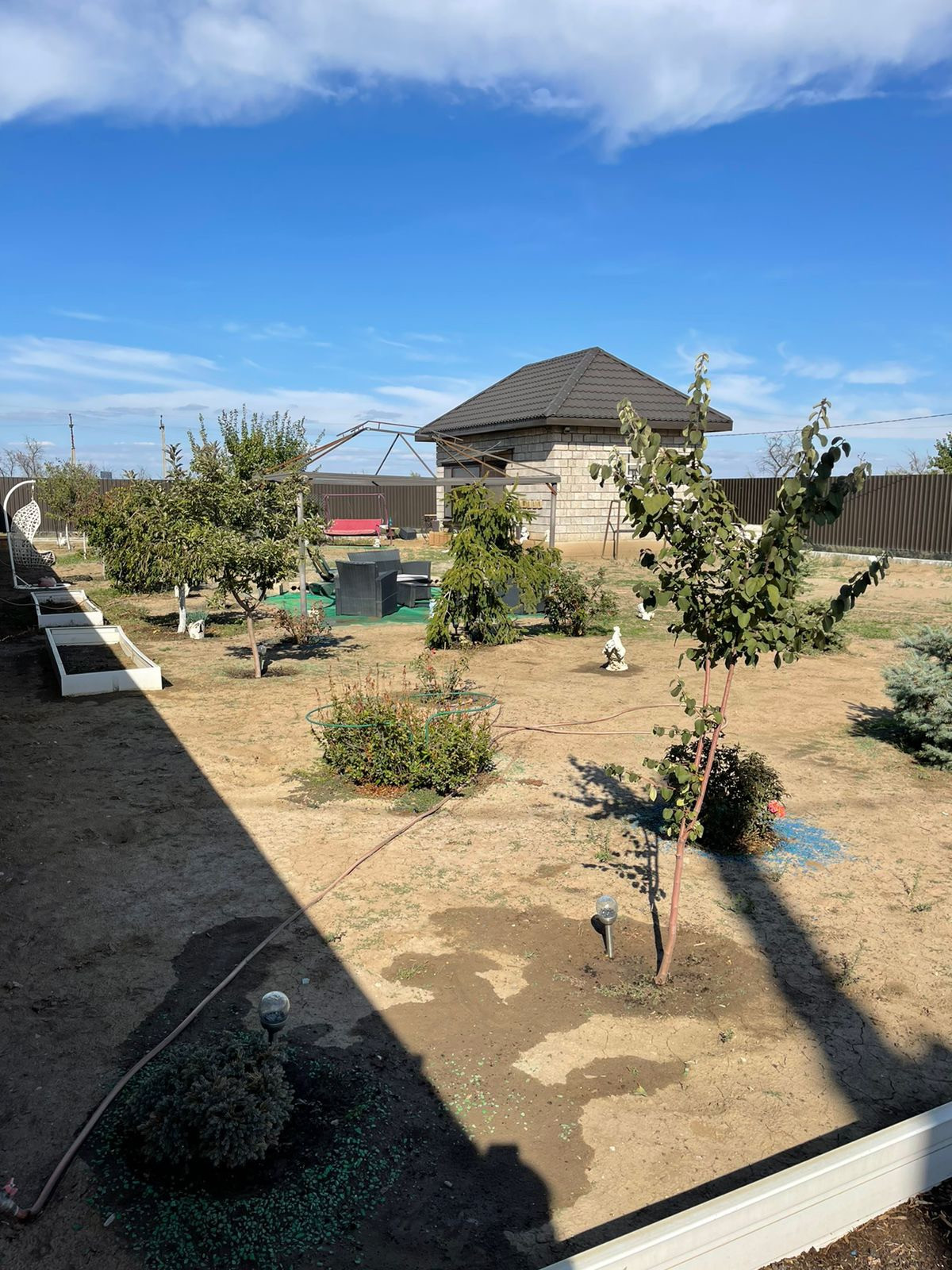 на участке высажены плодовые  и декоративные деревья и кустарники.