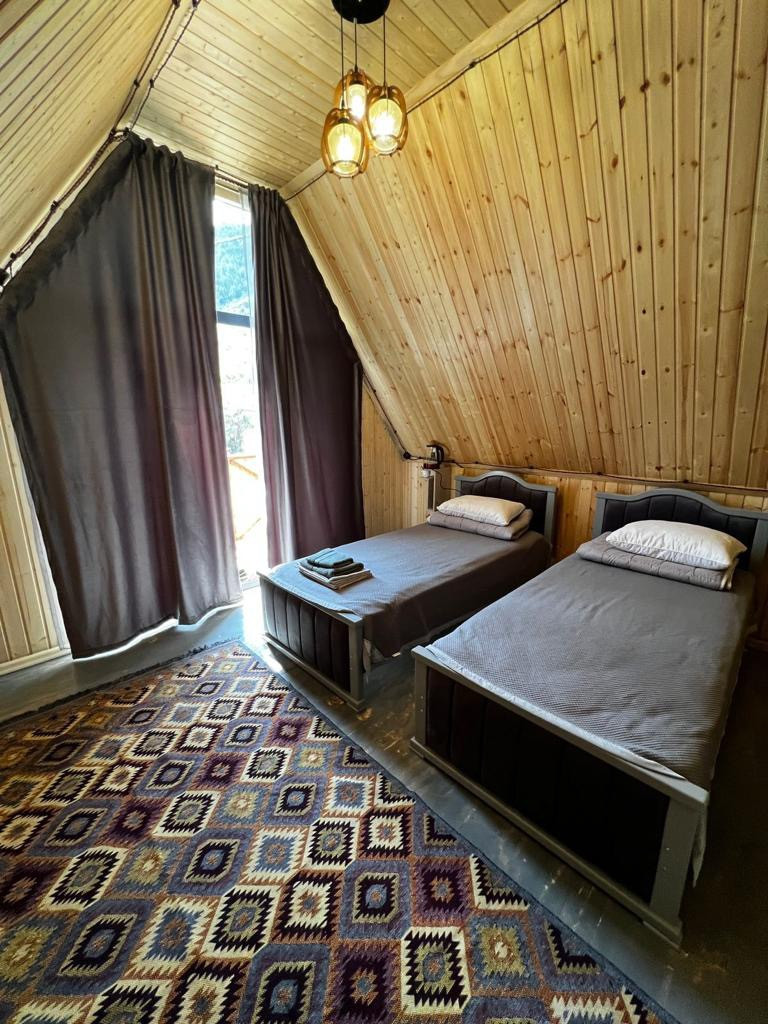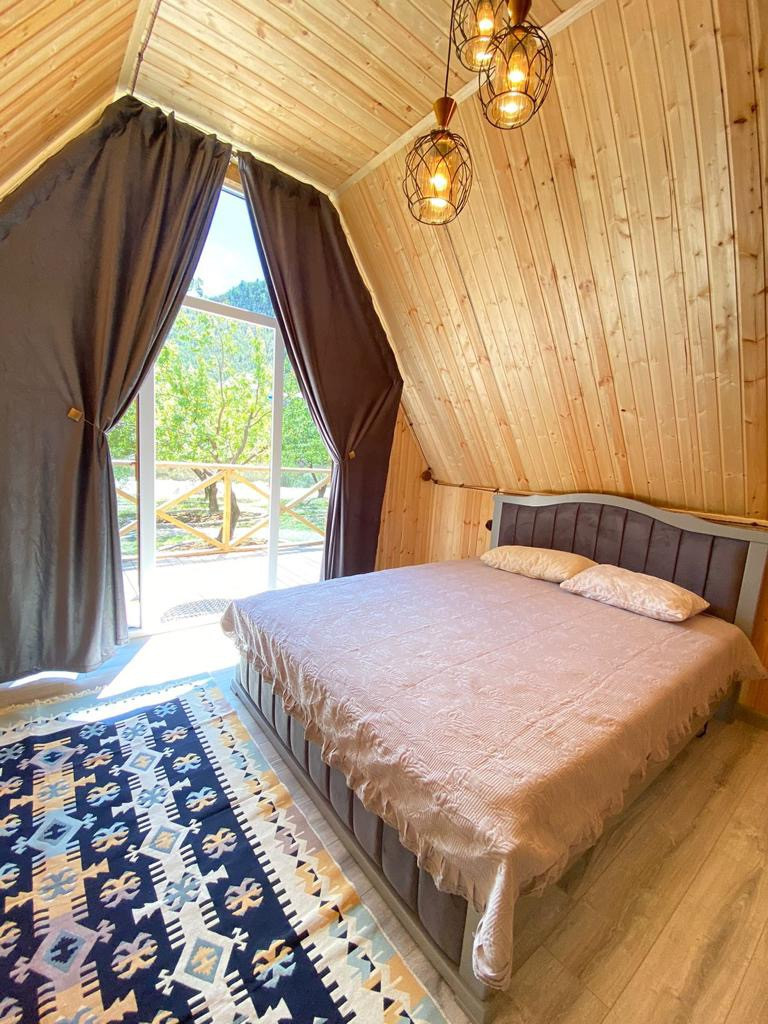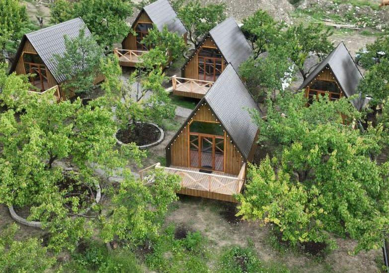 Уютные домики в центре абрикосового сада с невероятно красивым видом на горы, где можно собраться компанией за костром теплым уютным вечером, или же пожарить мясо на мангале и собраться компанией в беседках которые у нас имеются на участке перед домиками, а так же вы можете заказать у нас национальные блюда, наши повара не оставят вас равнодушными. Не далеко от нас имеются