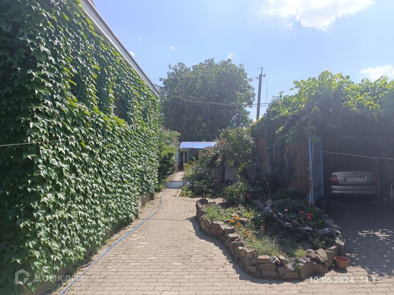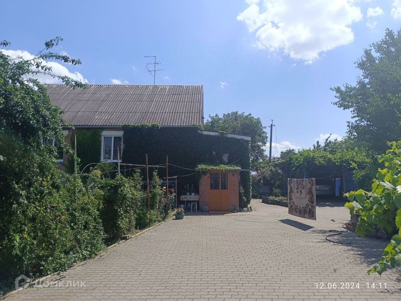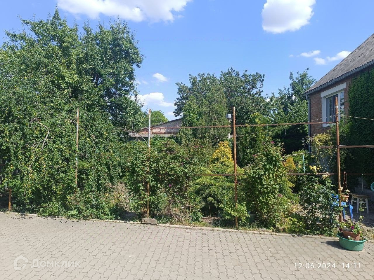 Во дворе уложена тротуарная плитка.