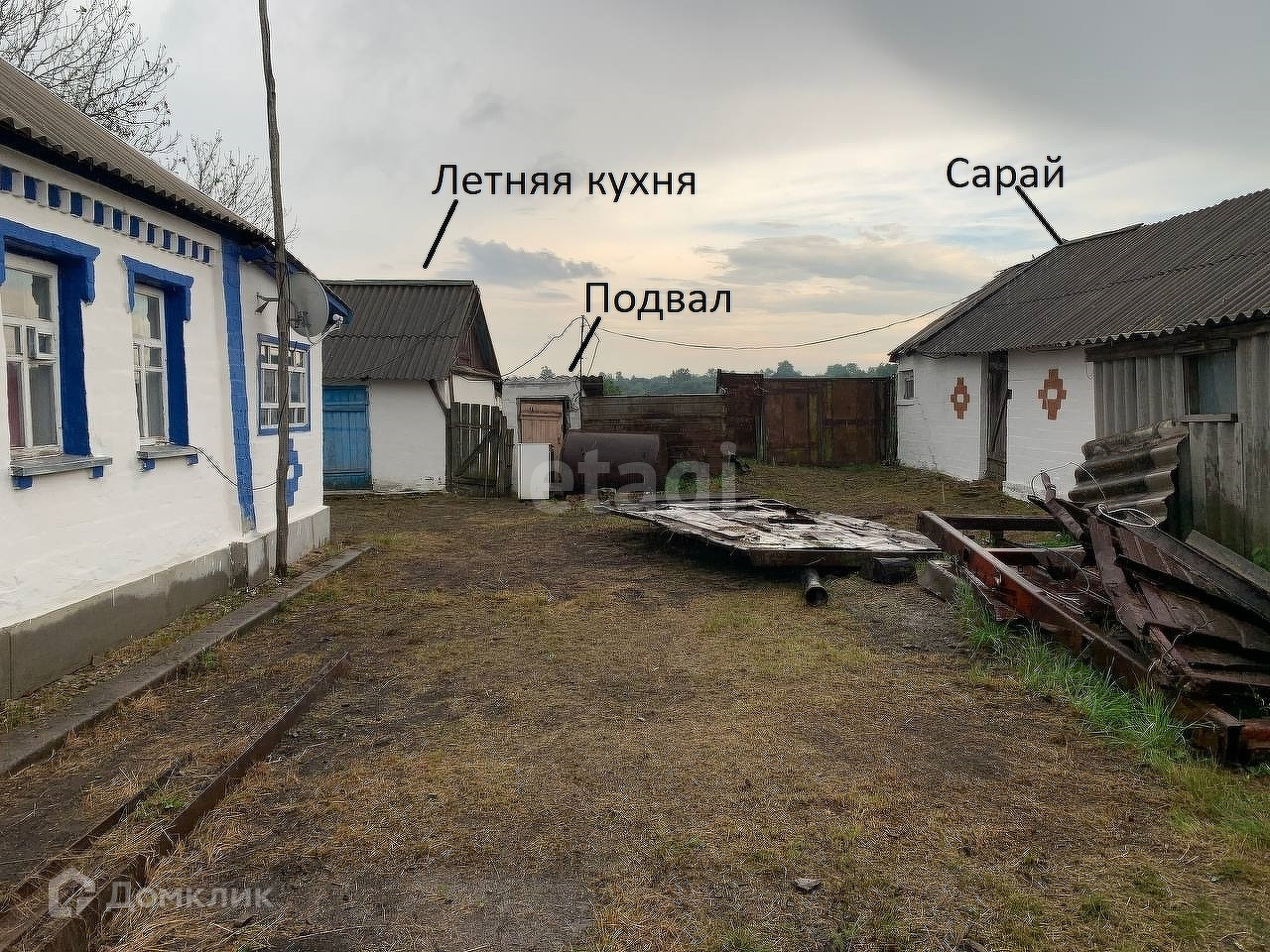 На территории двора имеются постройки: несколько сараев, подвал, гараж и летняя кухня. Так же имеется огород (в ухоженном состоянии).