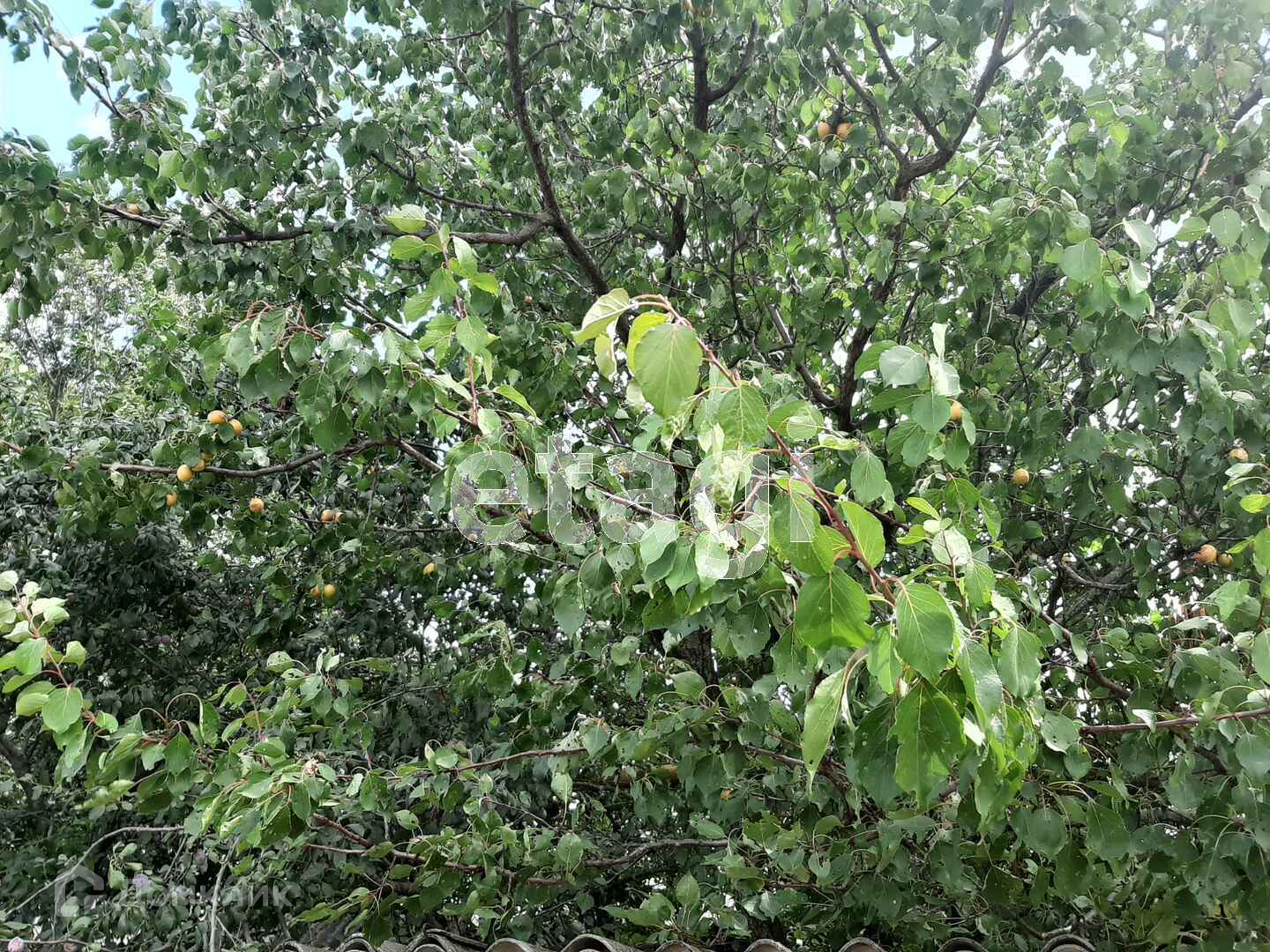 На участке растут плодовые деревья, кустарники.