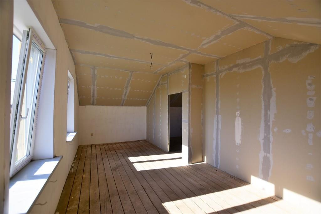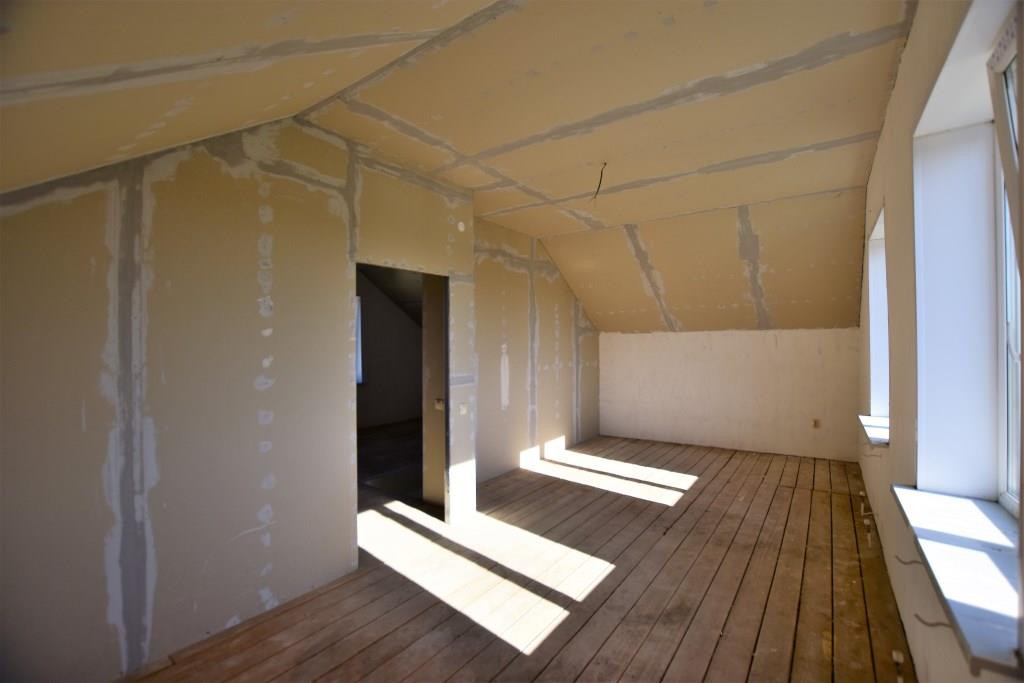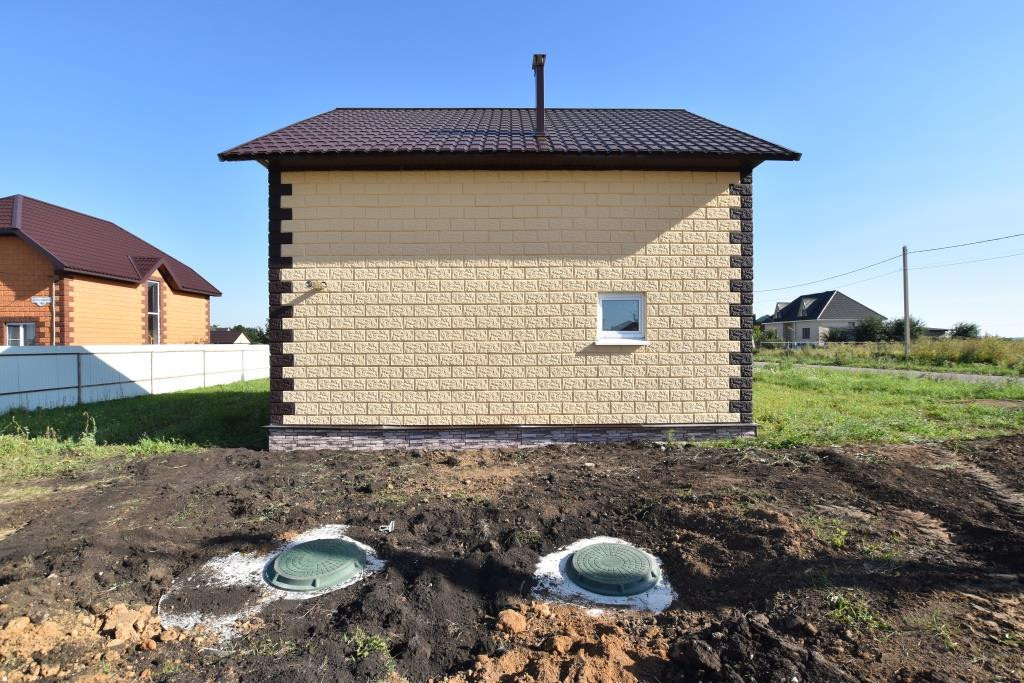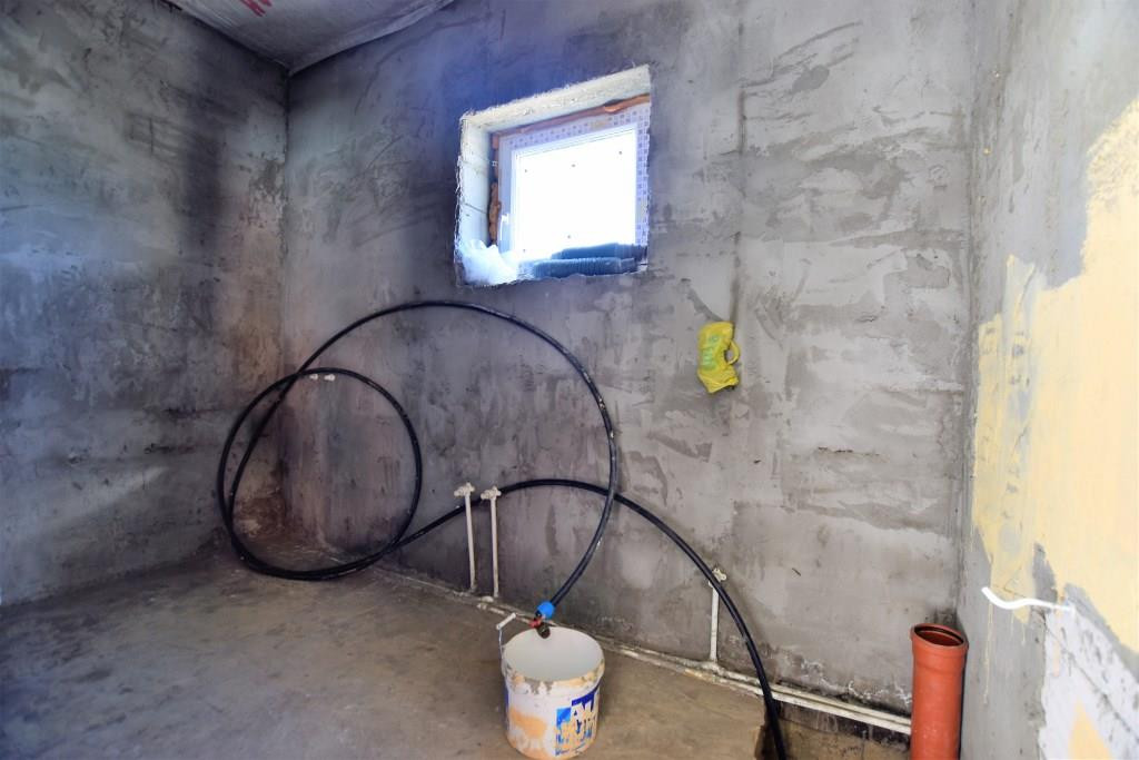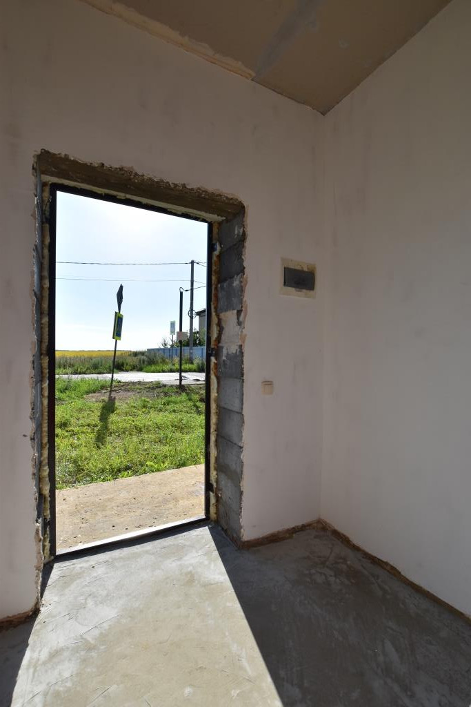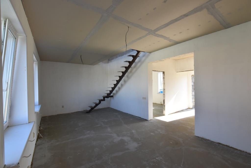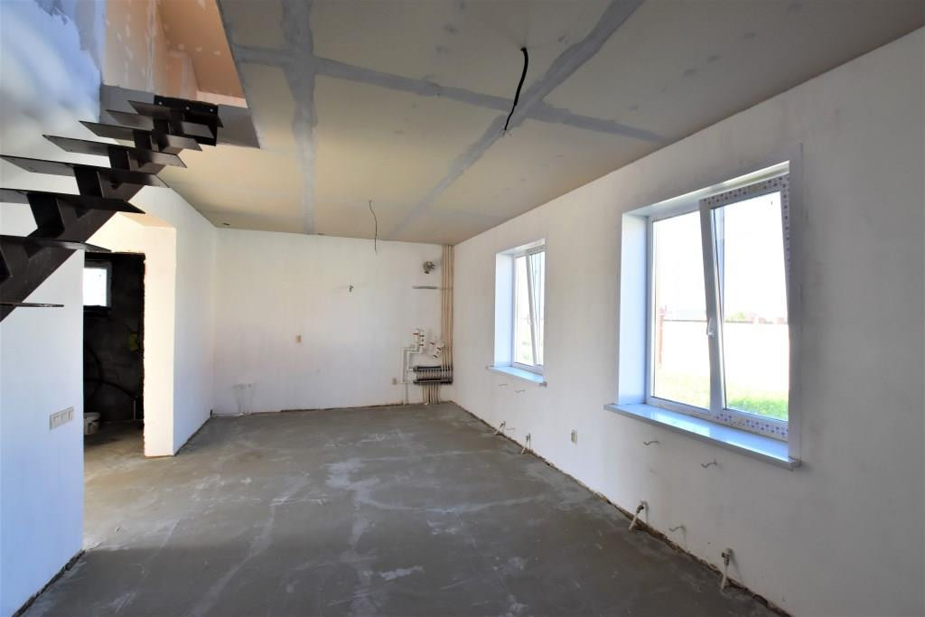 Материал стен - теплоблоки, крыша - металлочерепица с утеплением. Чистовая отделка - стены оштукатурены, стяжка, окна ПВХ, теплые полы (1 этаж), электрическая разводка по всему дому, входная металлическая дверь, все коммуникации заведены в дом.