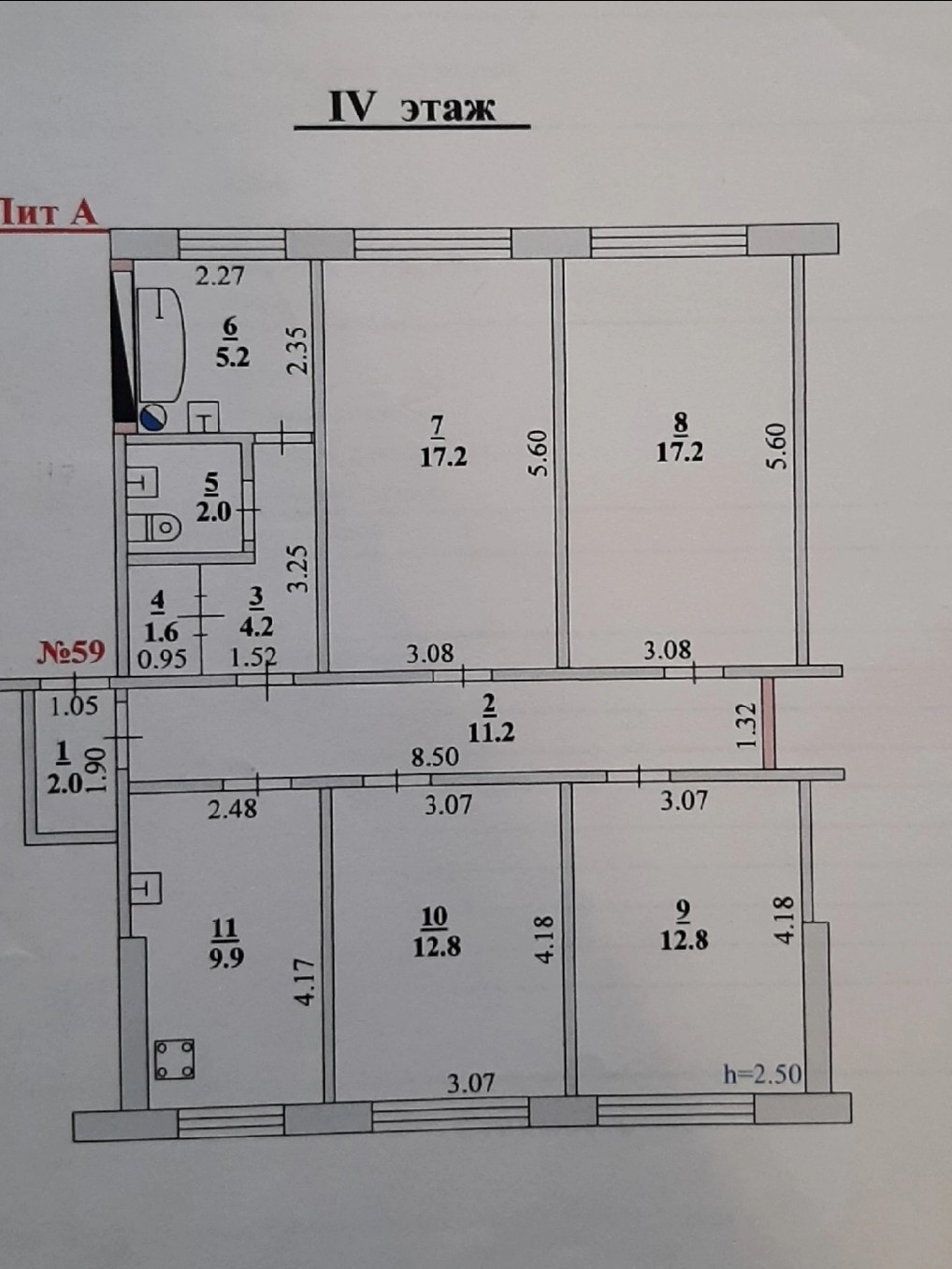 Высота потолков 2.5 м