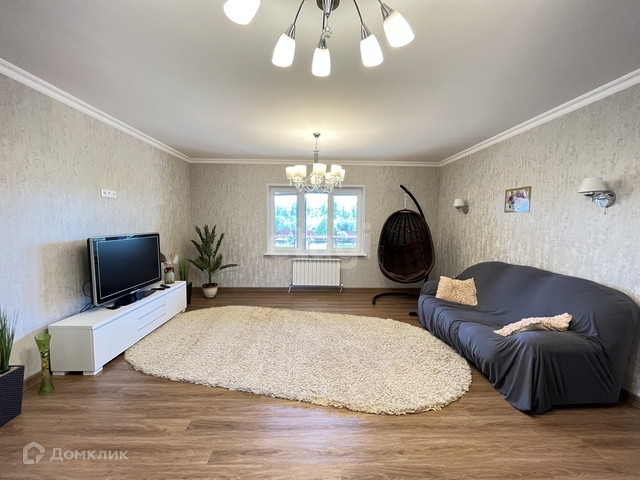 В доме выполнен хороший ремонт в светлых тонах. Теплые водяные полы. Просторная прихожая, детская и взрослая спальни, кабинет, большая гостиная, кухня-столовая с выходом на летнюю террасу. Второй этаж - мансардный (две комнаты и гостиная), просторный балкон с видом на участок и реку. Дом очень теплый - даже в сильные морозы радиаторы отопления практически не включаются.