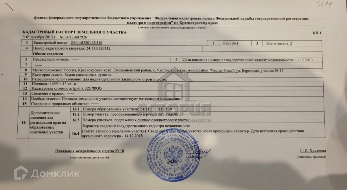 Кадастровый номер: 24:11:0320112:510