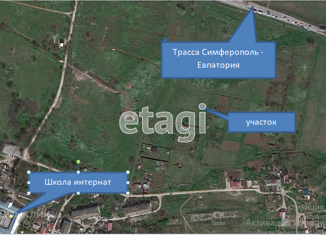 Ровный, прямоугольной формы участок. Рядом траса Симферополь-Саки-Евпатория. |