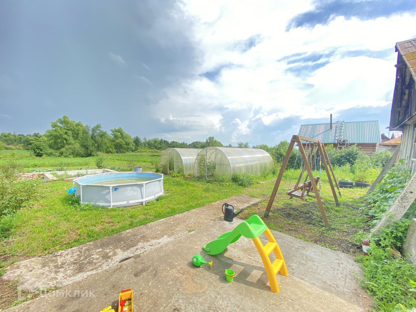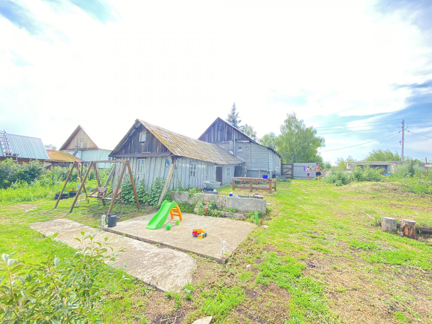 Большой ухоженный участок. Есть много плодовых деревьев, много других растений. Баня в рабочем состоянии. Детская площадка. Две большие теплицы.   Отличный дом как для жизни так и для дачи.