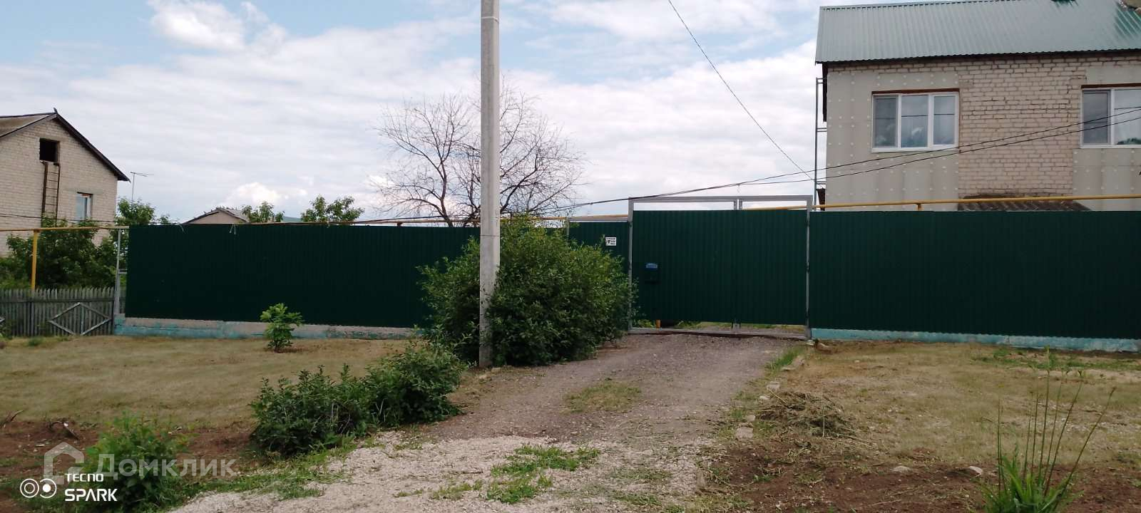 Перед домом забор из проф. листа с воротами для заезда автомобиля. Планировалась постройка гаража, но в связи с продажей и переездом - отменилась.