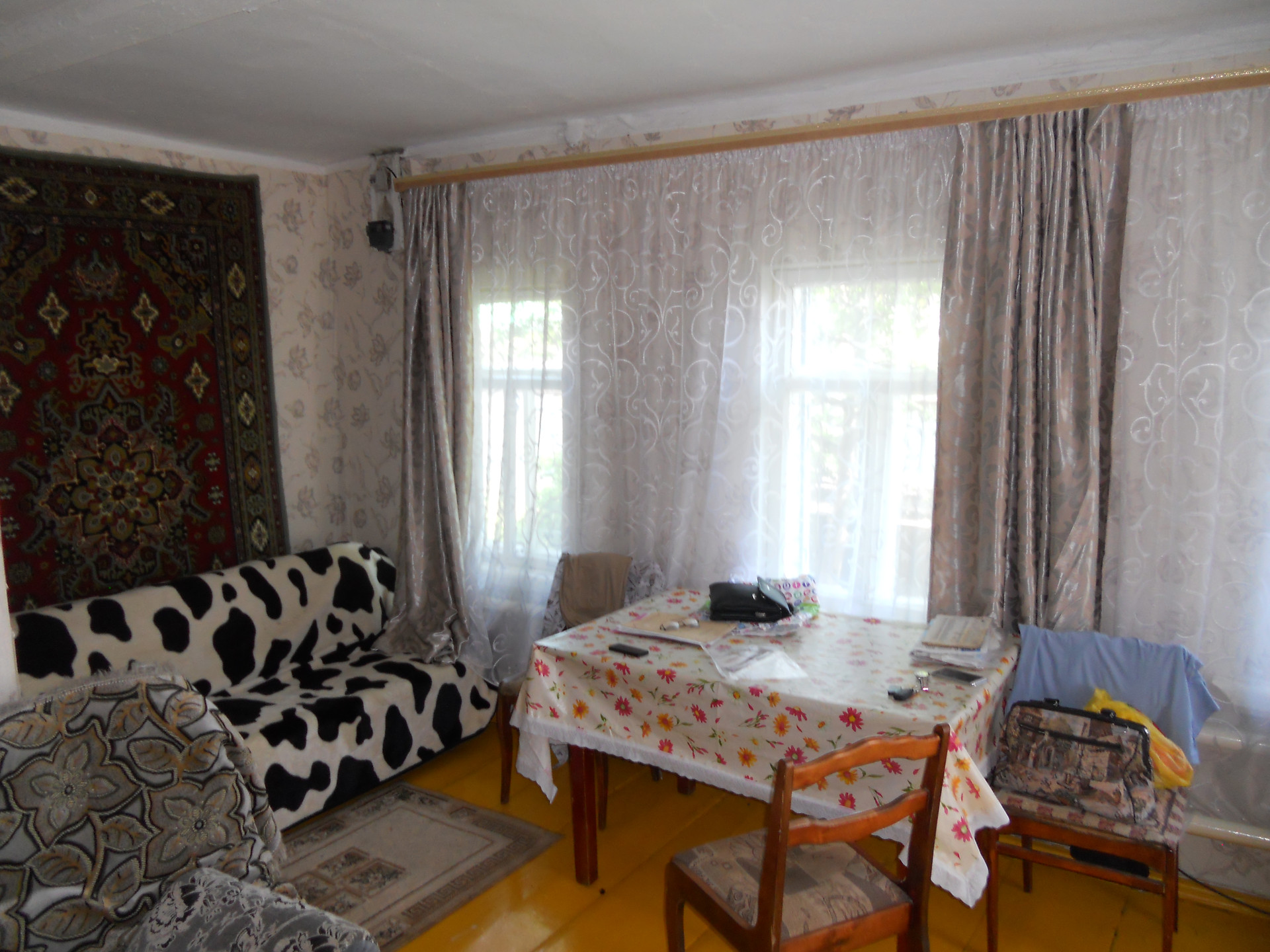 Продается благоустроенный  дом, с надворными постройками( баня, гараж). На участке много плодоносящих насаждений. Внутри дома косметический ремонт, на полу ленолиум, индивидуальное отопление агв, вода заведена, канализация не выведена, электричество, газ, все подключенные коммуникации работают, есть большой сухой погреб. До дома асфальтированная дорога.