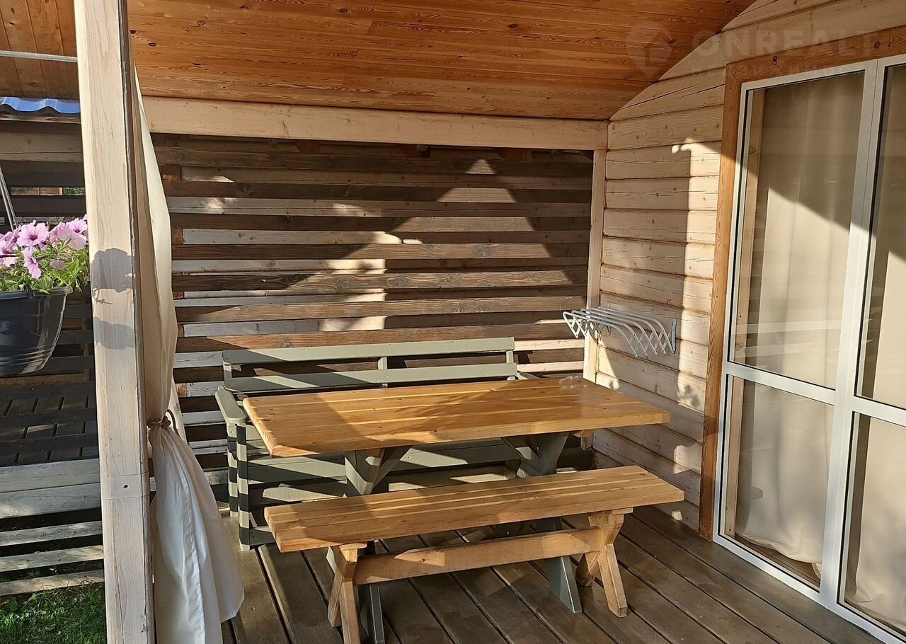 На большой терассе стол и две лавки.