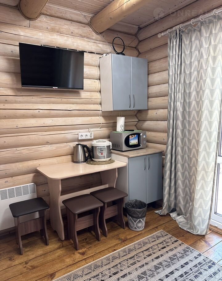 - Мини-кухня (стол, стулья, микроволновка, чайник, мультиварка, холодильник, необходимая посуда).