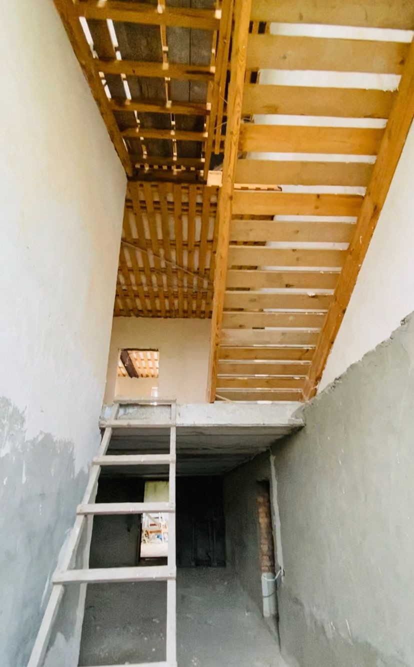 -перекрытие нижних этажей железо бетон , верхних деревянные.