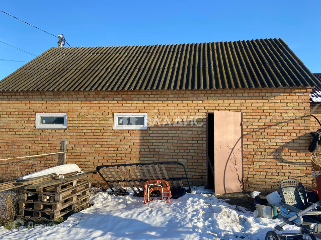 На участке имеется прочный кирпичный гараж, обеспеченный электричеством 380В, что делает его идеальным для хранения автомобиля или использования в качестве мастерской.