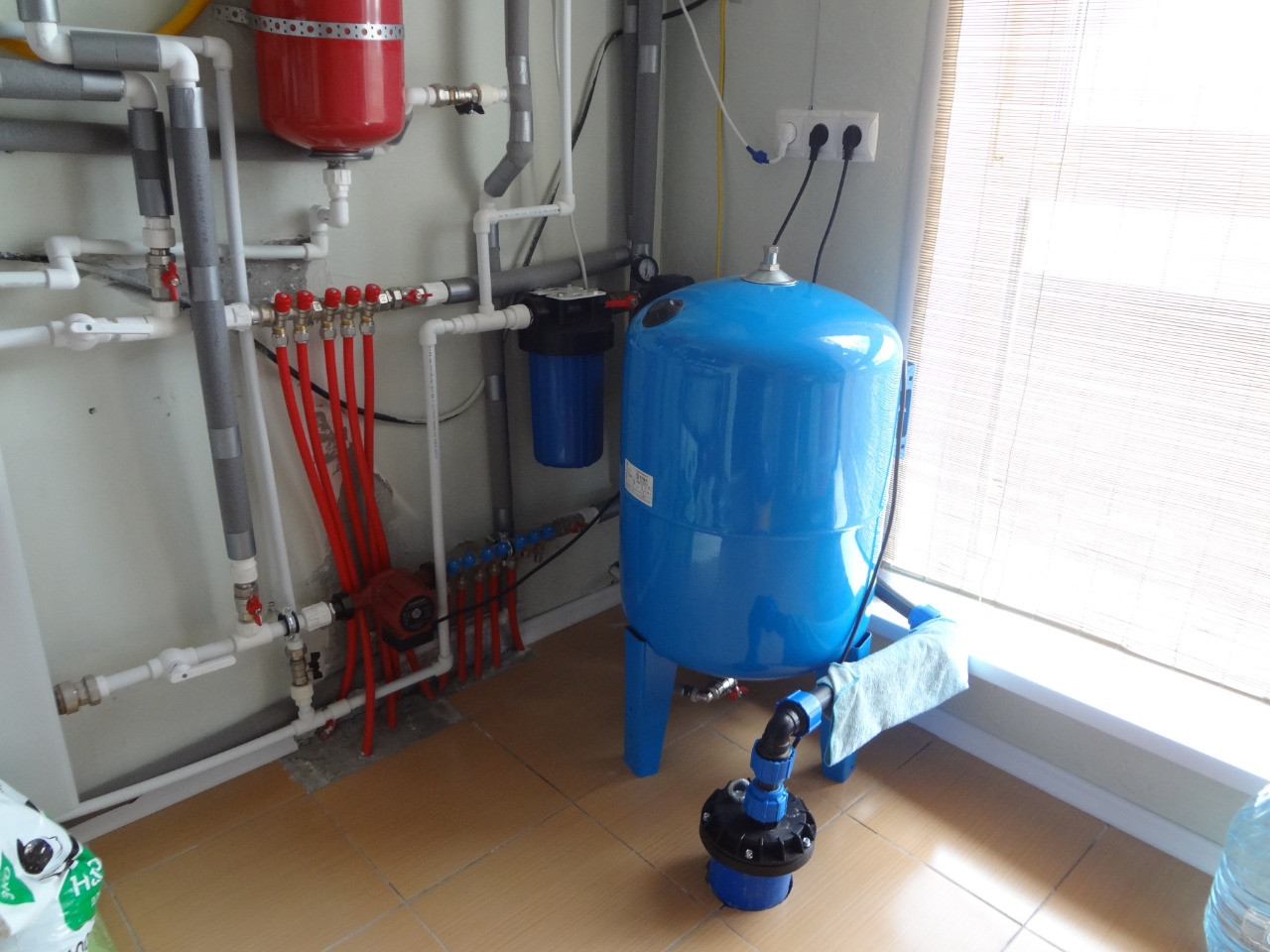 - Водоснабжение - скважина в доме - 52 м, с выводом в котельное помещение, насос Водолей БЦПЭ 0.5-63 (Украина), магистральных фильтр 10ВВ, аккумуляционный бак на 100 литров «Stout», с нижней подачей.