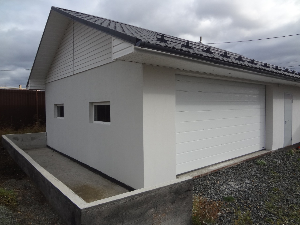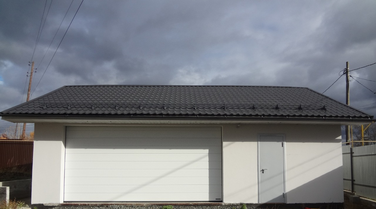 - Размер 9.7х7.2, с пятиметровыми въездными воротами «Hormann», на 2 машиноместа и значительным дополнительным объёмом для хозяйственных нужд.