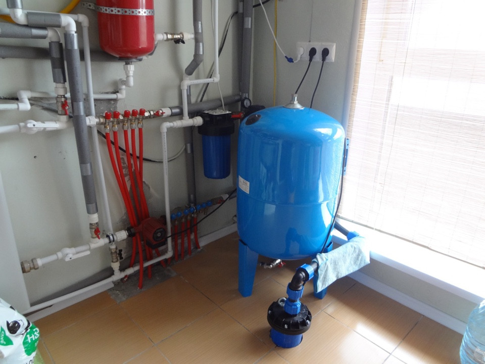 - Водоснабжение - скважина в доме - 52 м, с выводом в котельное помещение, насос Водолей БЦПЭ 0.5-63 (Украина), магистральных фильтр 10ВВ, аккумуляционный бак на 100 литров «Stout», с нижней подачей.