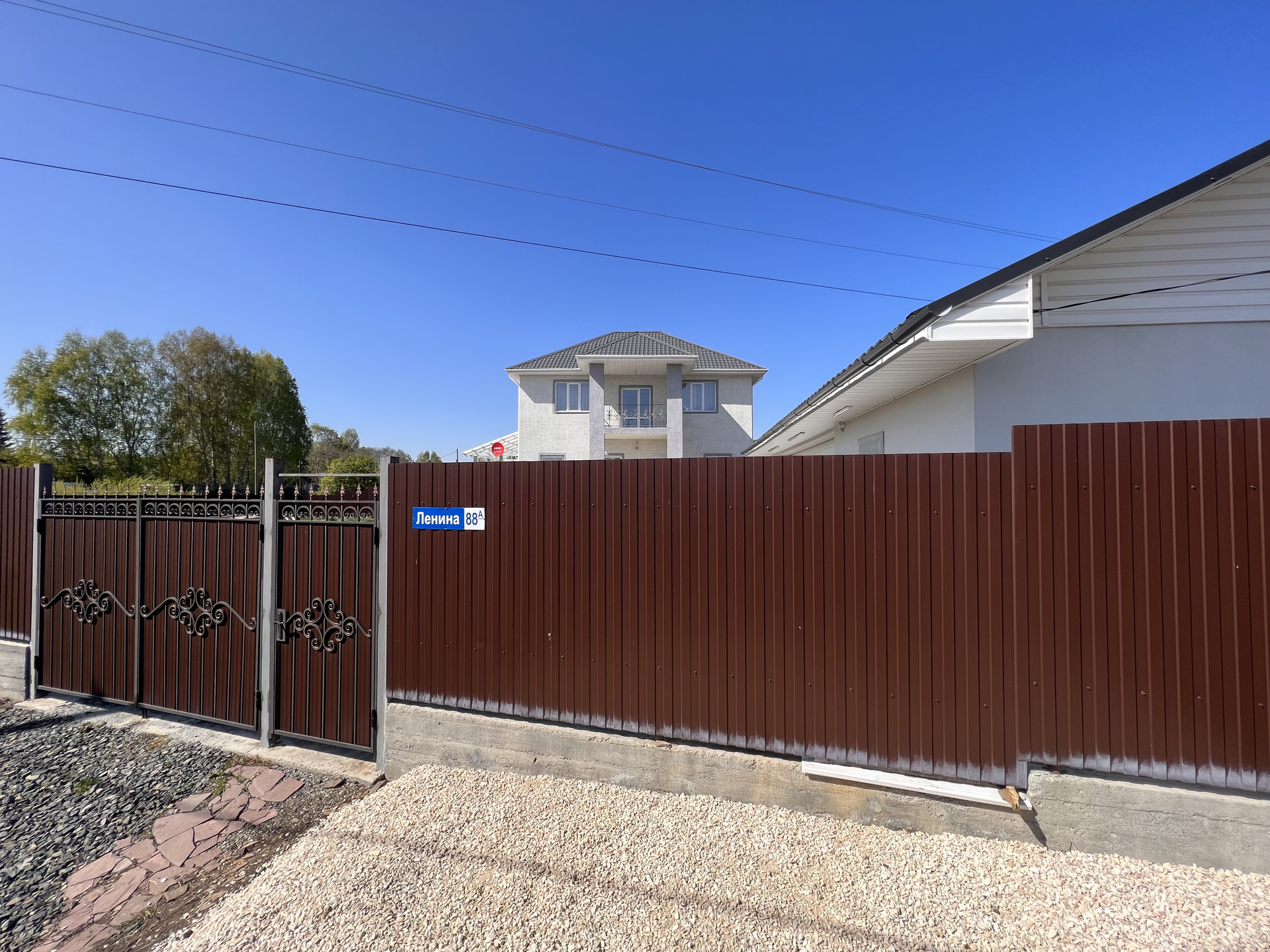 По периметру участка установлен забор на фундаменте, с распашными воротами