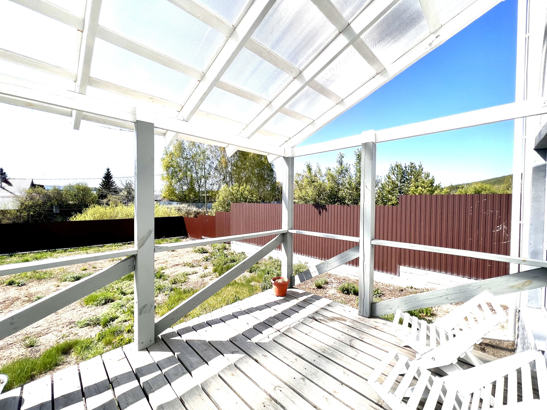 - Терраса – 30 кв.м., покрытие - поликарбонат усиленный «EuroGlass», толщина 10 мм, структура «колотый лед».
