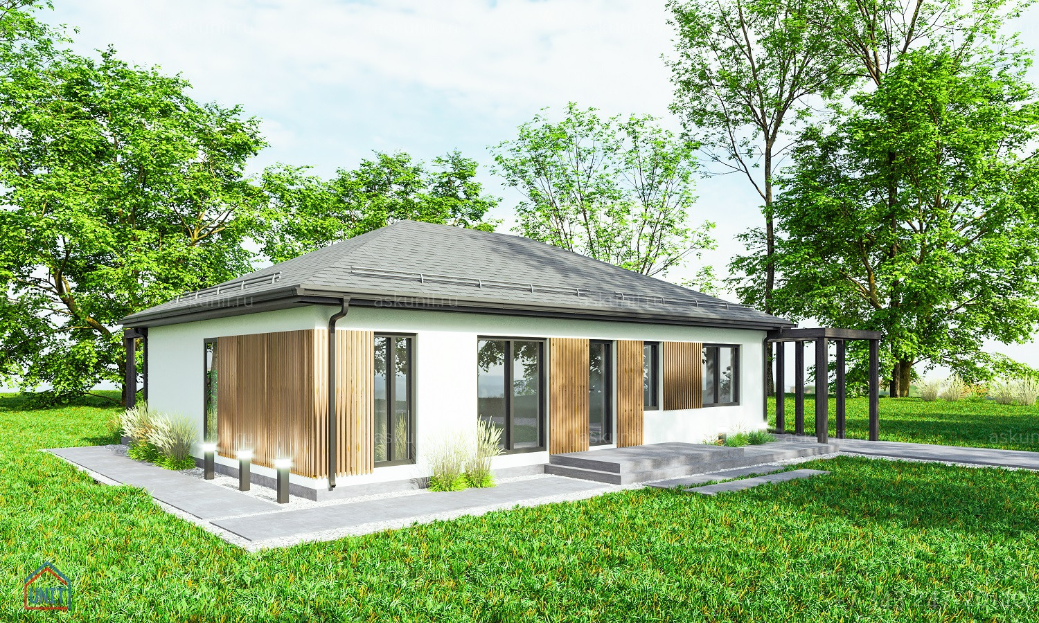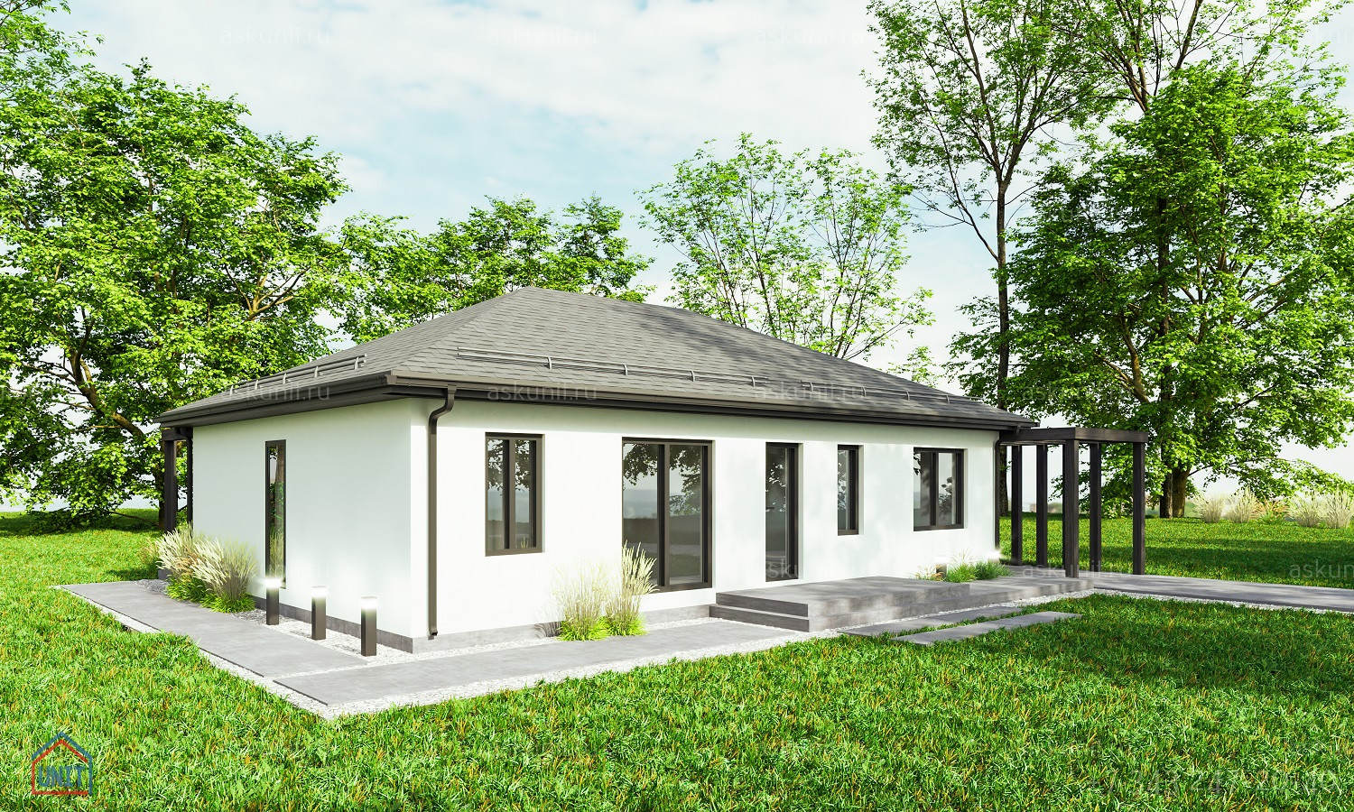 Указанная стоимость является ориентировочной  для дома в комплектации "под чистовую отделку"и может варьироваться в зависимости от выбранных материалов, инженерного наполнения и наличия или отсутствия коммуникаций на участке.