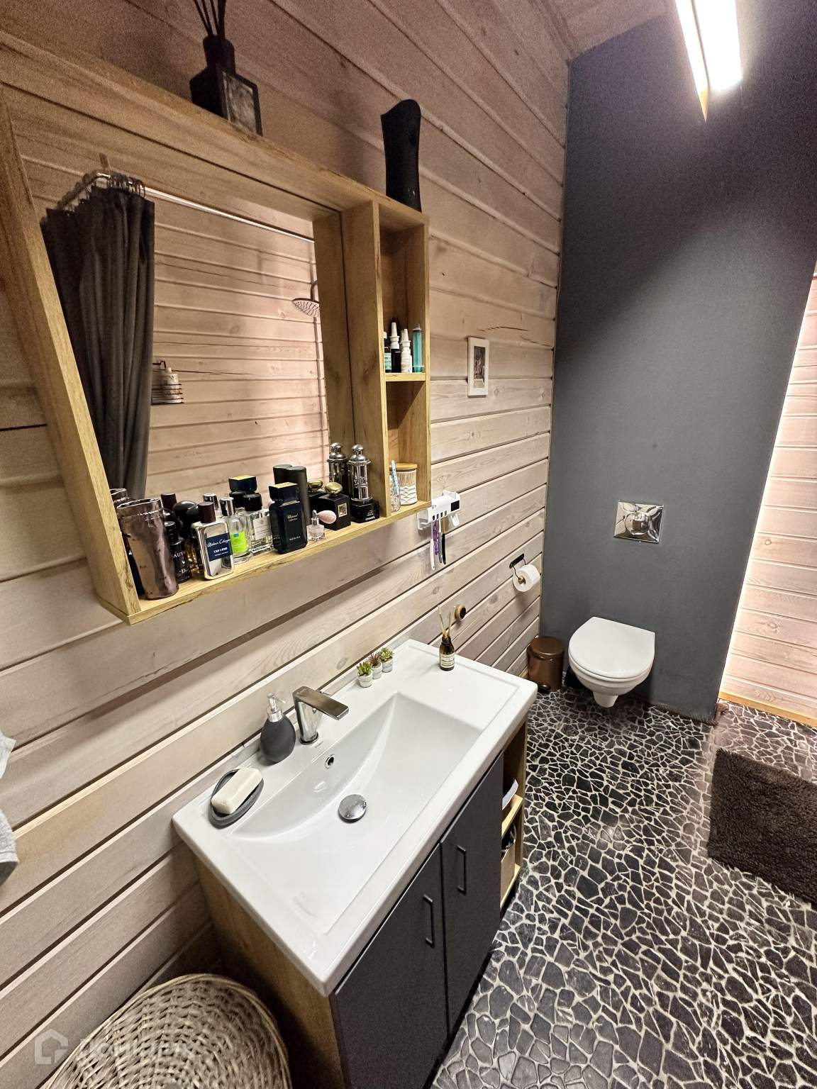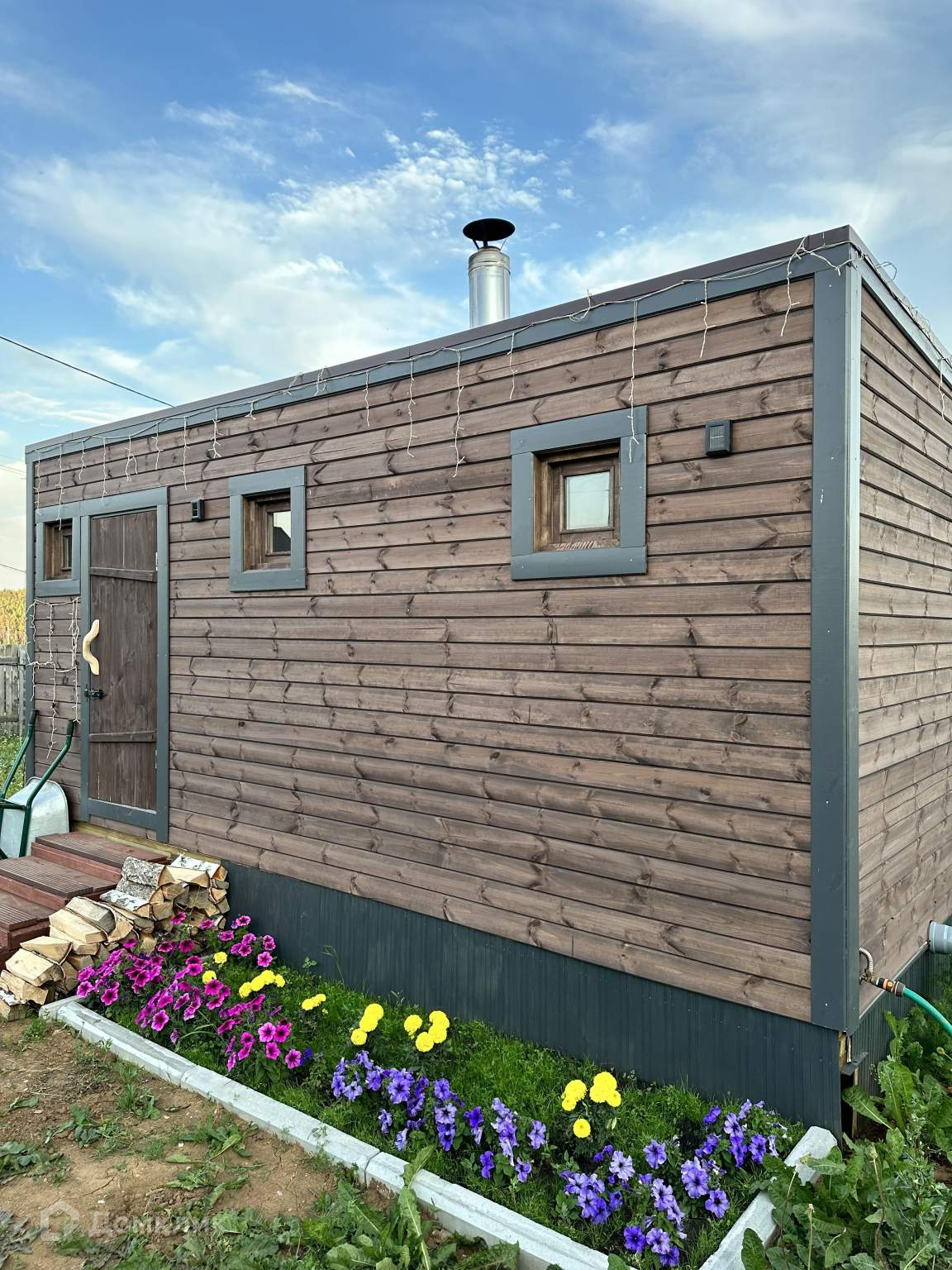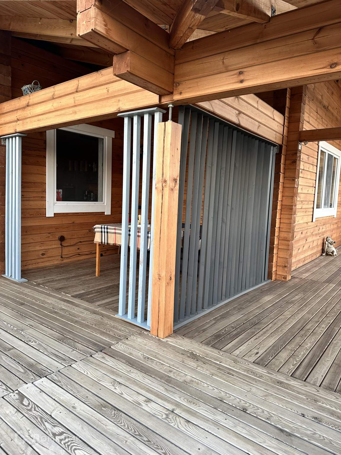 Дом сделан по дизайн проекту шале из качественного бруса. В доме три комнаты плюс санузел, есть возможность увеличения площади за счет мансардного этажа и дополнительного задействования террасы дома. Терраса дома площадью 50м2, выполнена из клеевого бруса, пол лиственница.