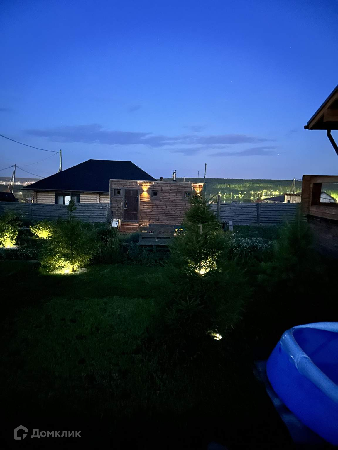 По дому: скважина 65 метров (вода голубая)