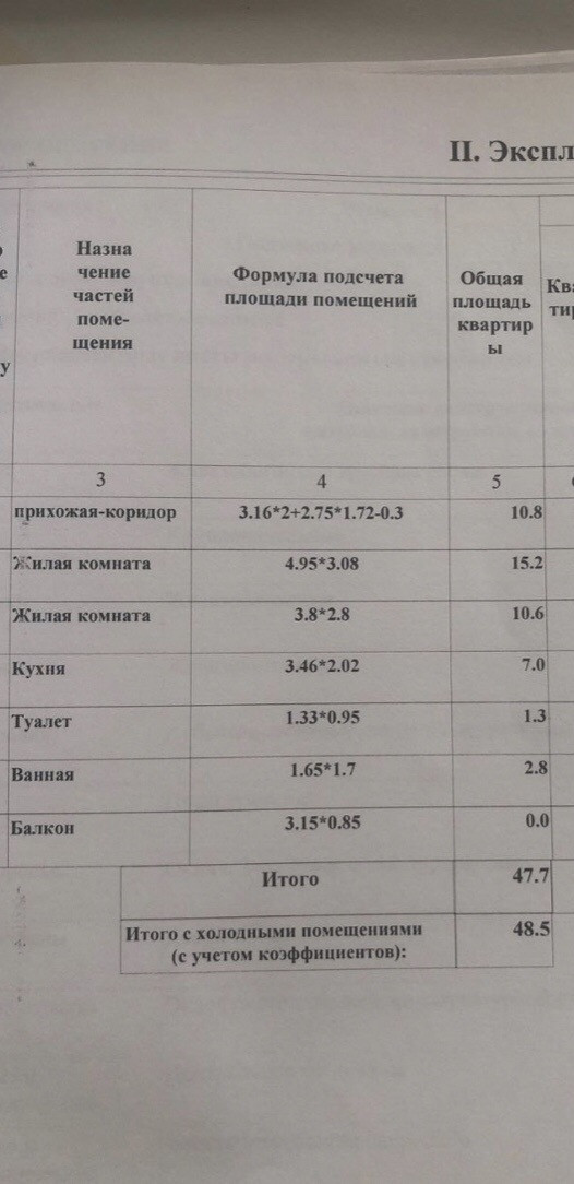 Жилая площадь 47.7 м2
