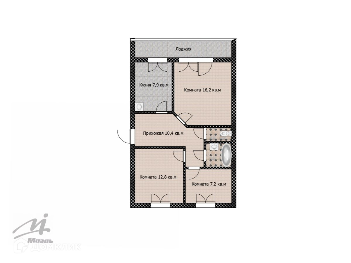 Общая площадь 57.6 м2