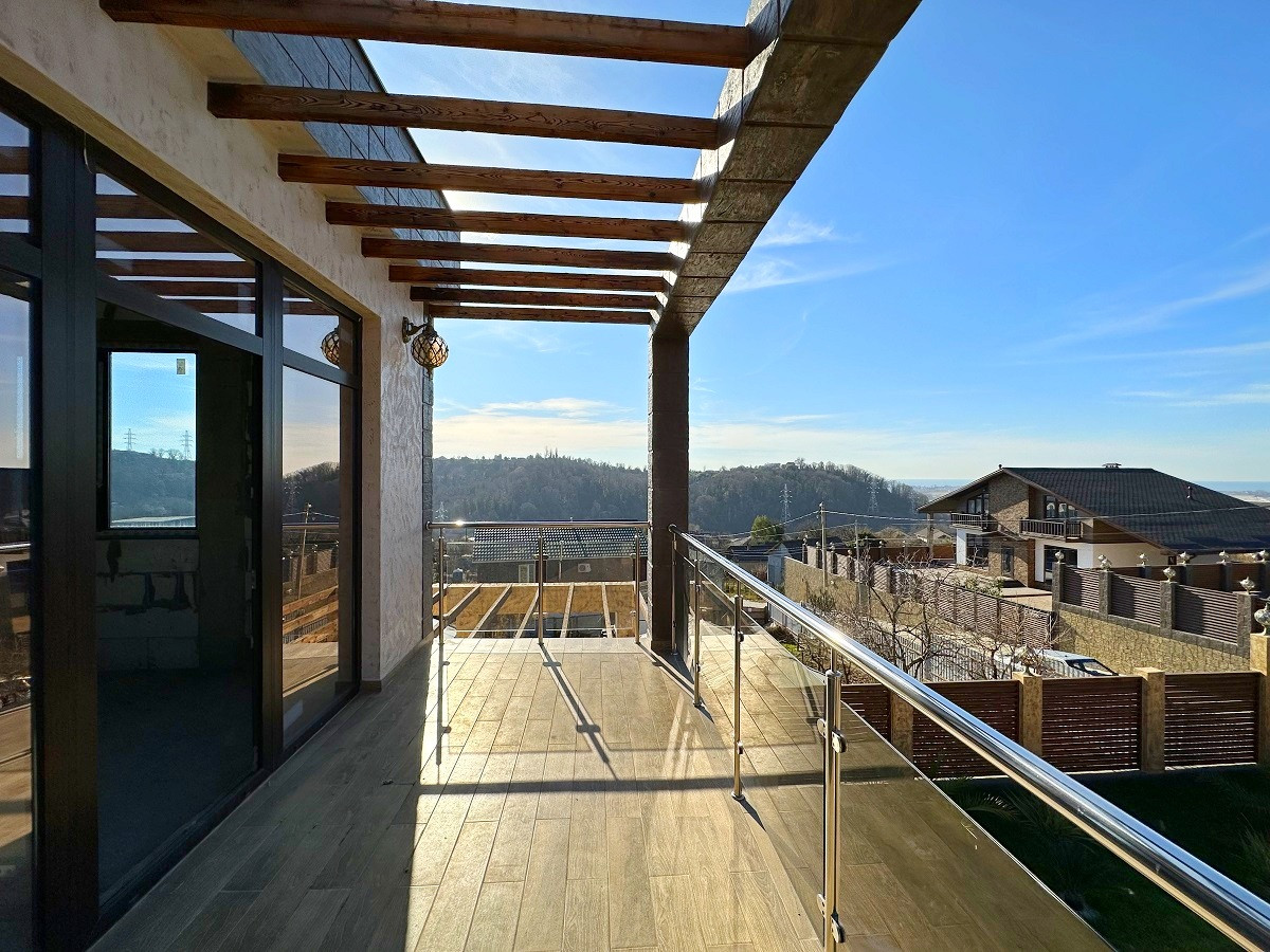На продажу выставлен новый дом площадью 130 кв.м. внутри свободная планировка, что позволит выполнить дизайн интерьера на Ваш вкус. Установлены панорамные окна, удобная лестница, высокие потолки и балконы с красивым видом на красоты курортного города.
