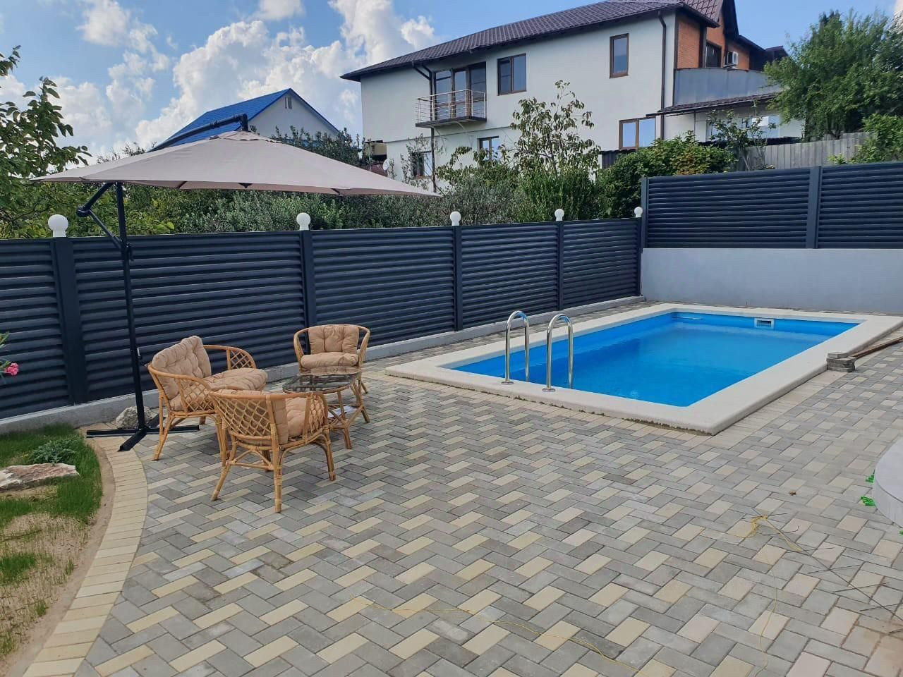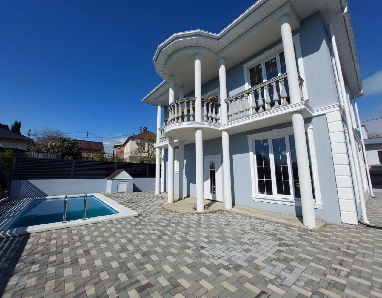 Дом полностью подключен к коммуникациям, участок в брусчатке и функционирует бассейн. Ворота автоматические, откатные. К дому подходит бетонная дорога.