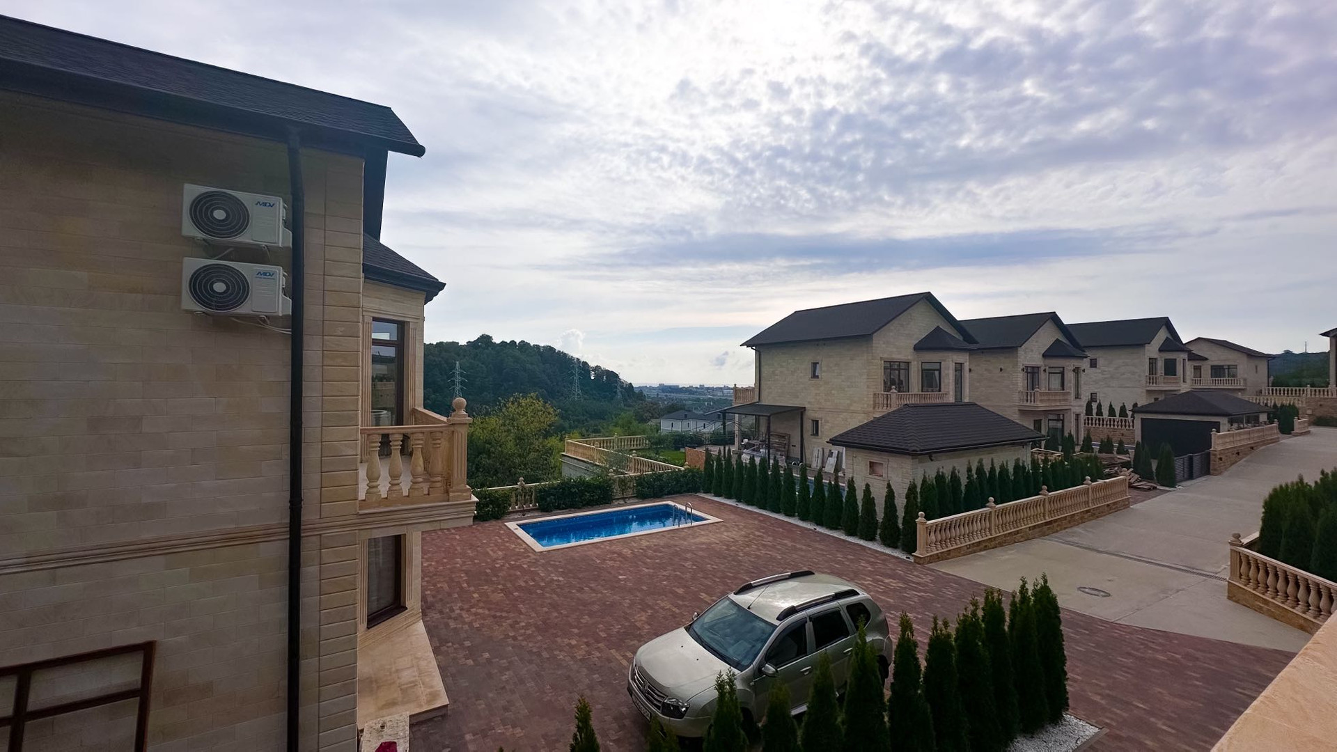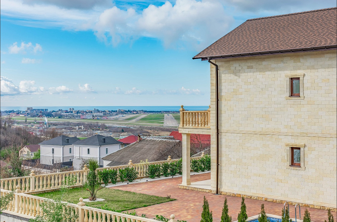 Закрытая территория- 1 Га, 13 домов, каждый с бассейном и видом на море и аэропорт.
