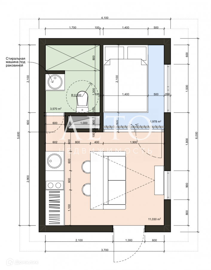 Общая площадь 20.7 м2