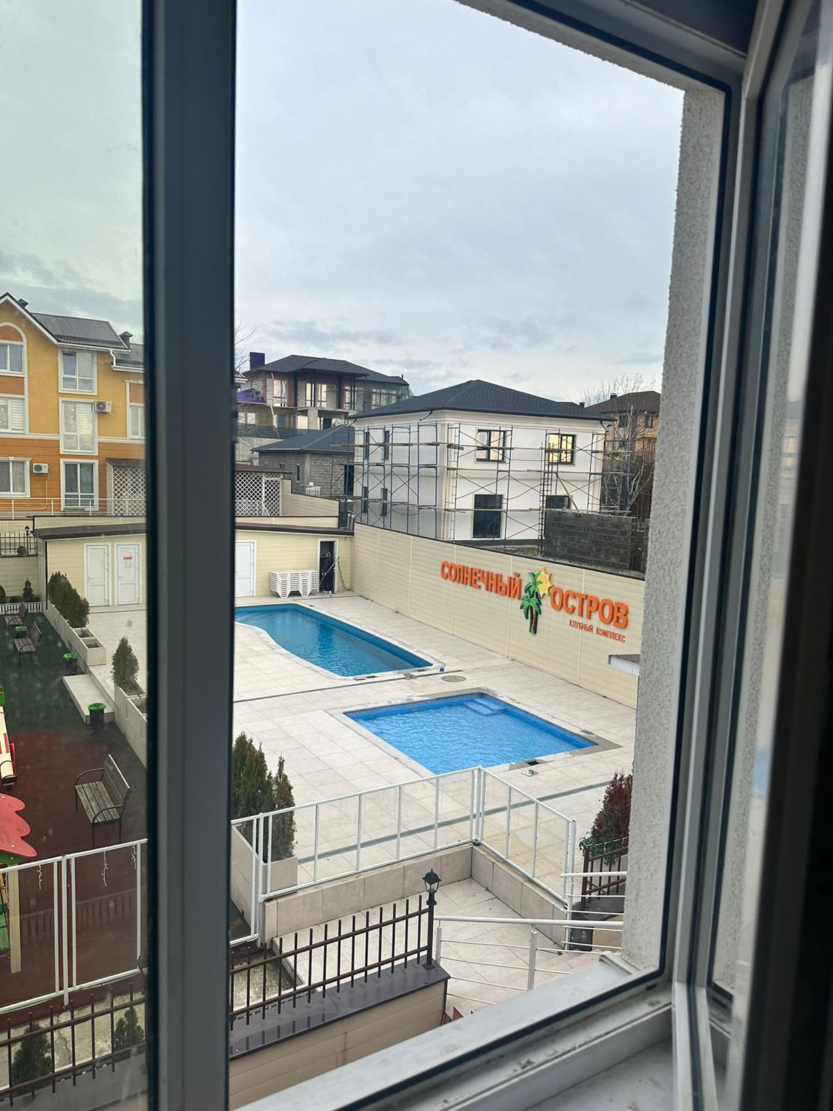 Инфраструктура комплекса включает в себя два подогреваемых бассейна, детскую игровую площадку, уютный парк отдыха с удобными лавочками и цветами, спортивную площадку для фитнеса и Workout.