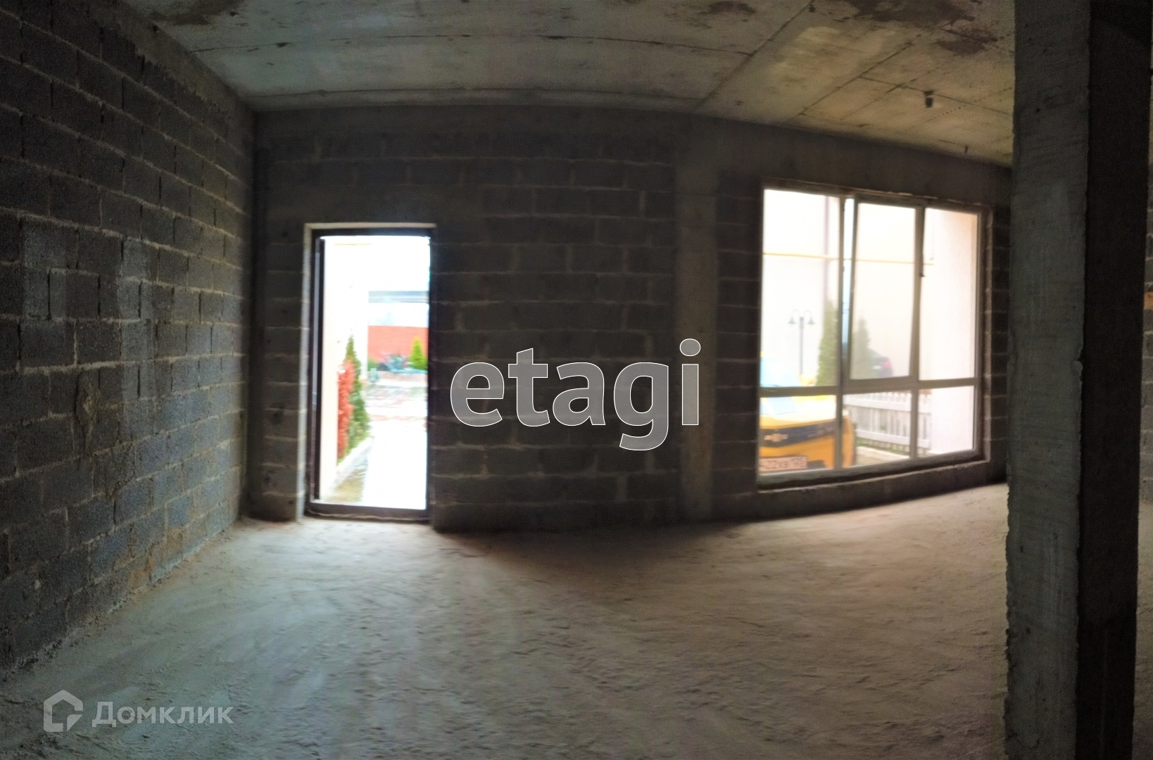 С парковкой на две машины около дома. Дом в черновом варианте.