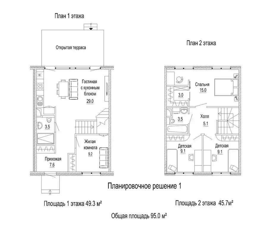Общая площадь 95 м2