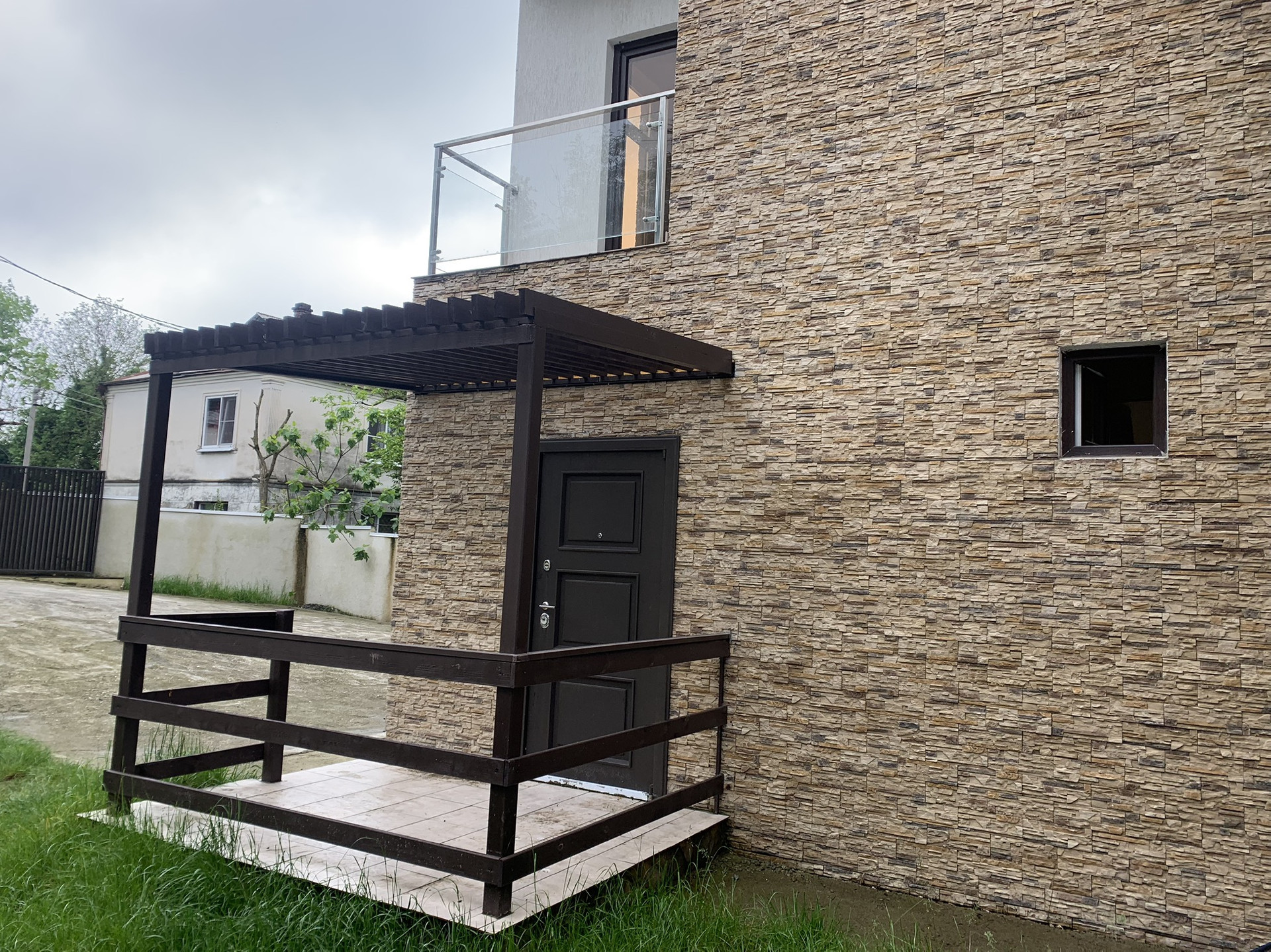 Таунхаус имеет свой отдельный вход с собственной придомовой территории . Земельный участок в собственности.