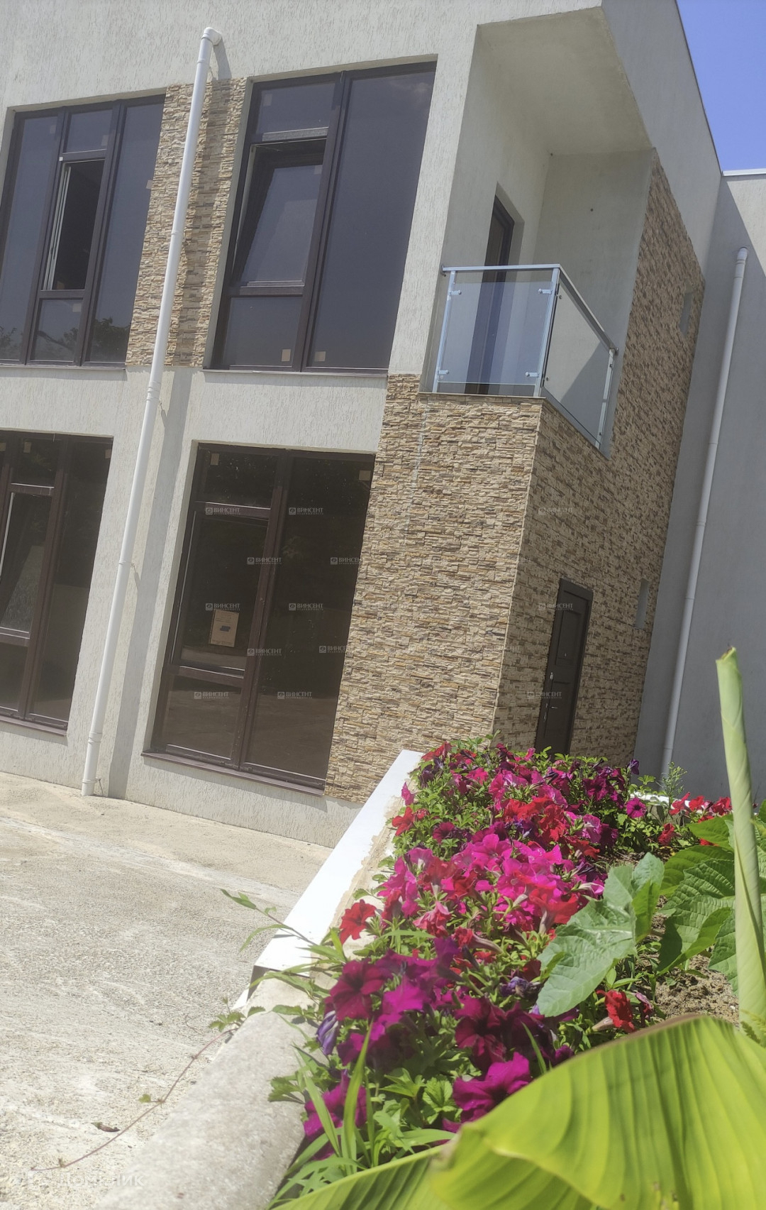 Дом монолит-каркас с панорамными окнами с энергосберегающими стеклопакетами. Натуральный камень, стальные ограждения, металлические фасадные панели, декоративная штукатурка.