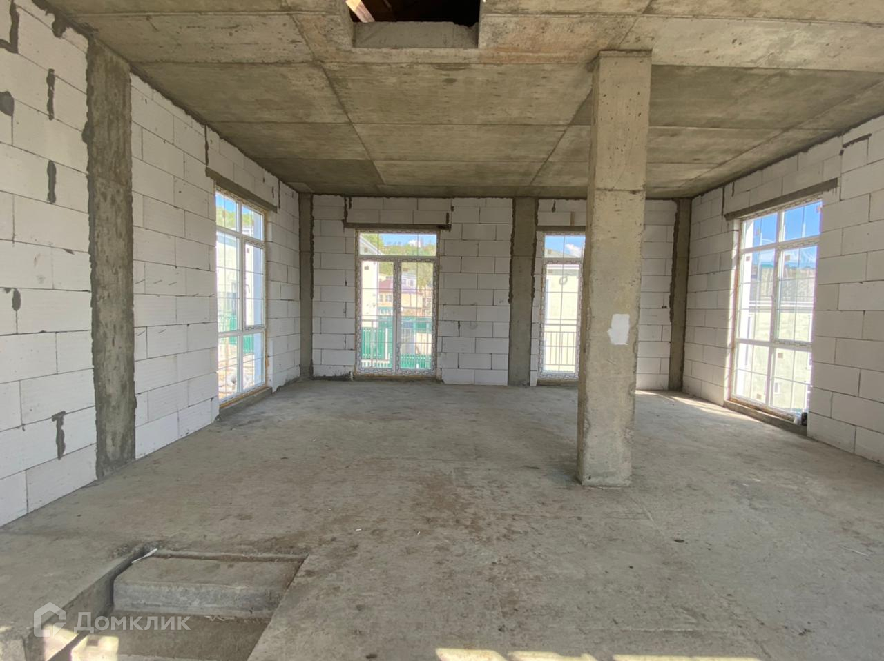 представляет собой монолитный каркас с блочным заполнением стен, витражное остекление,